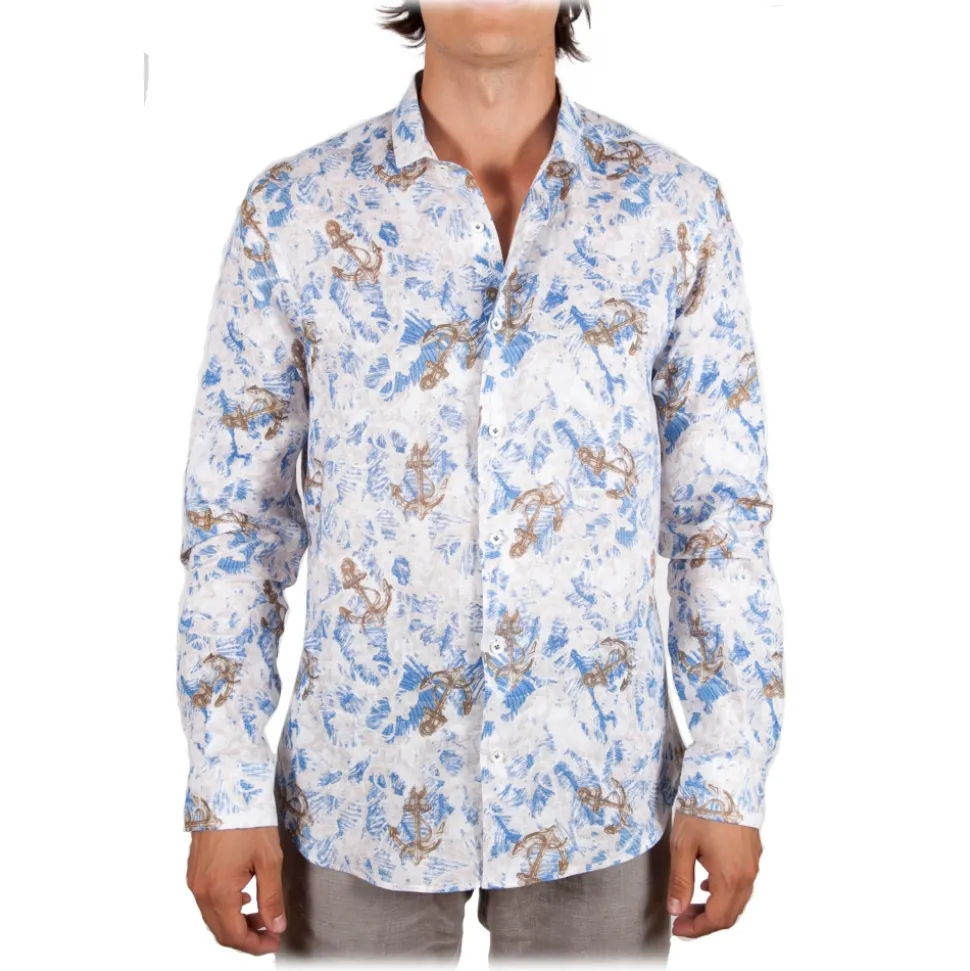Poggianti 1985 – Linen Fantasy Shirt French Collar – Handmade in Italy – New Luxury Exclusive Collection – Avvenice