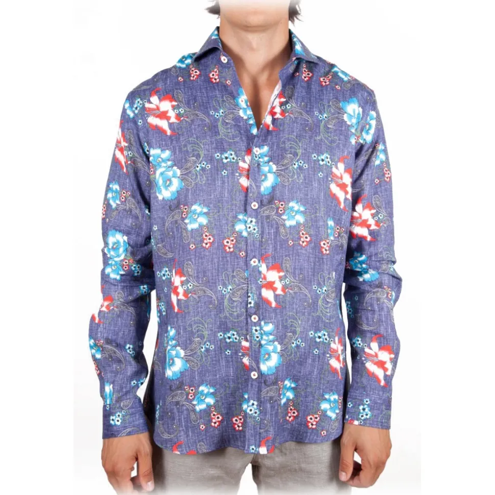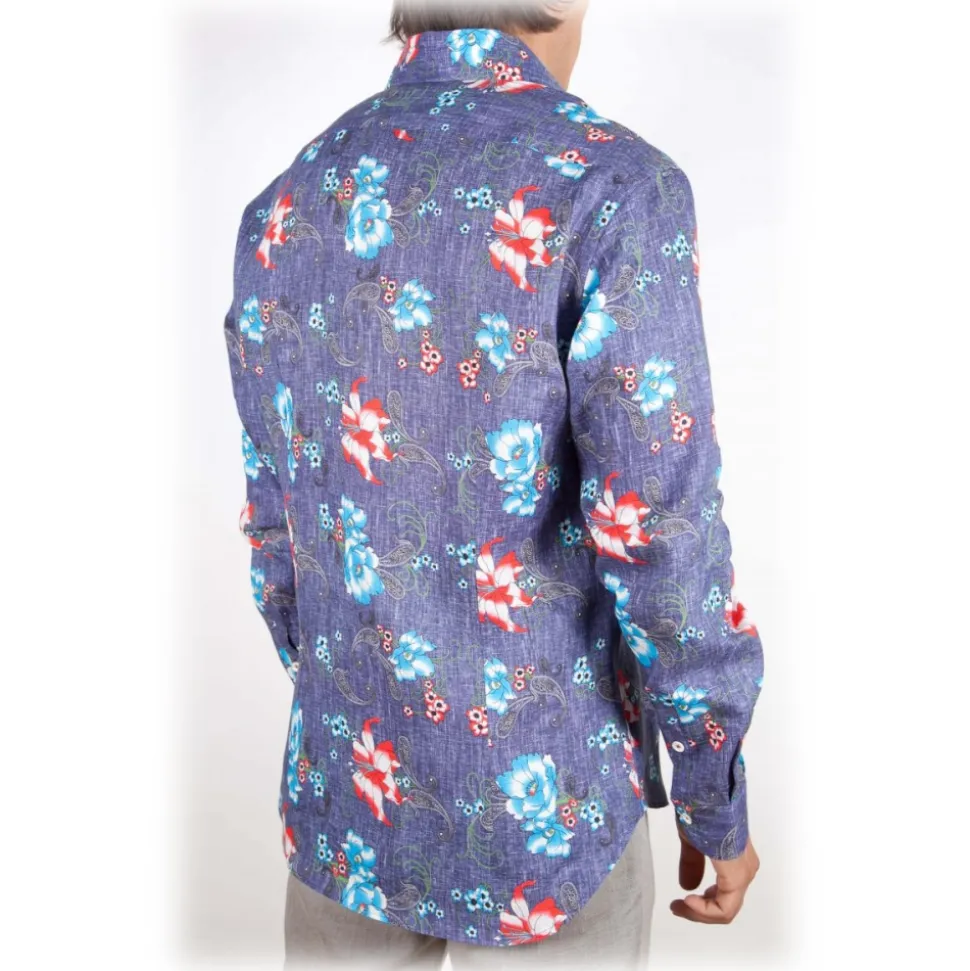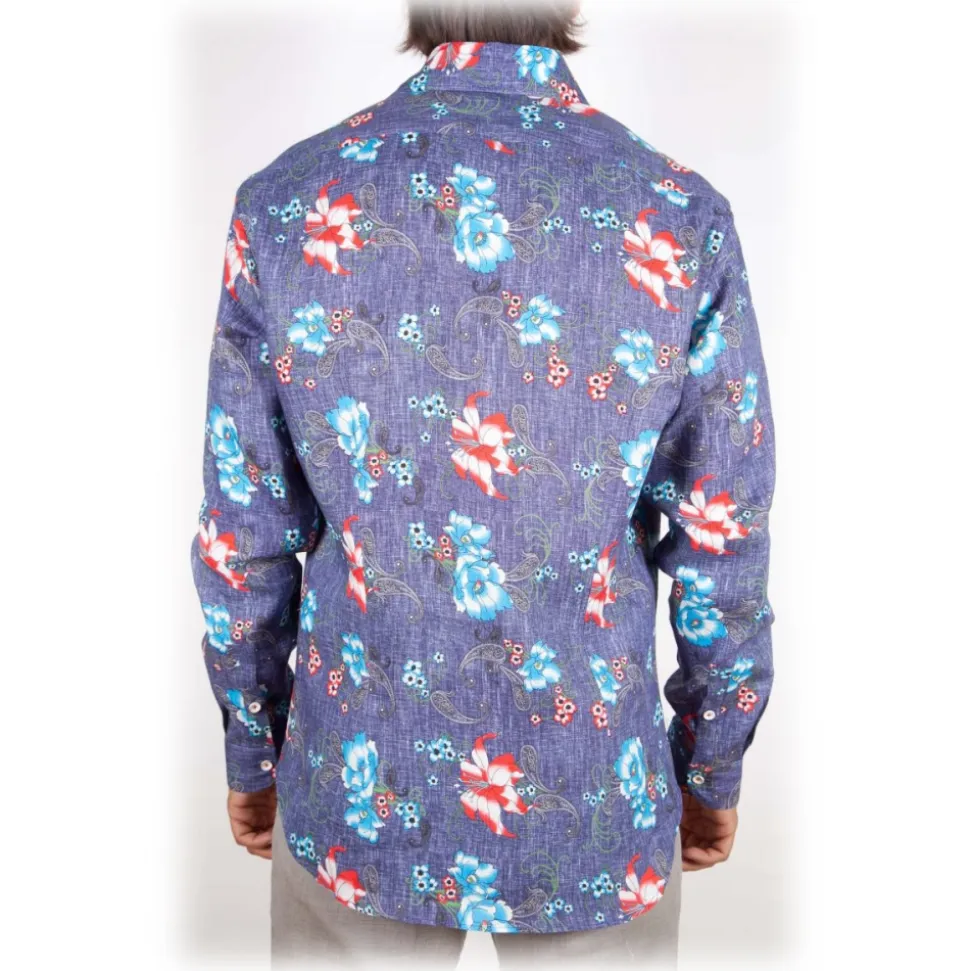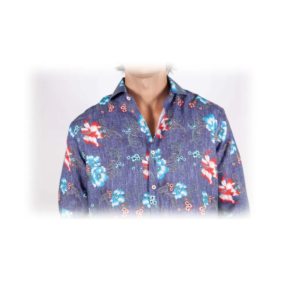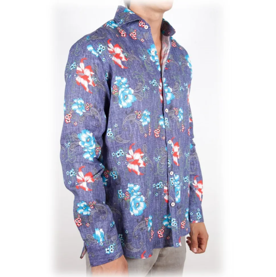 Poggianti 1985 – Linen Fantasy Shirt French Collar – Handmade in Italy – New Luxury Exclusive Collection