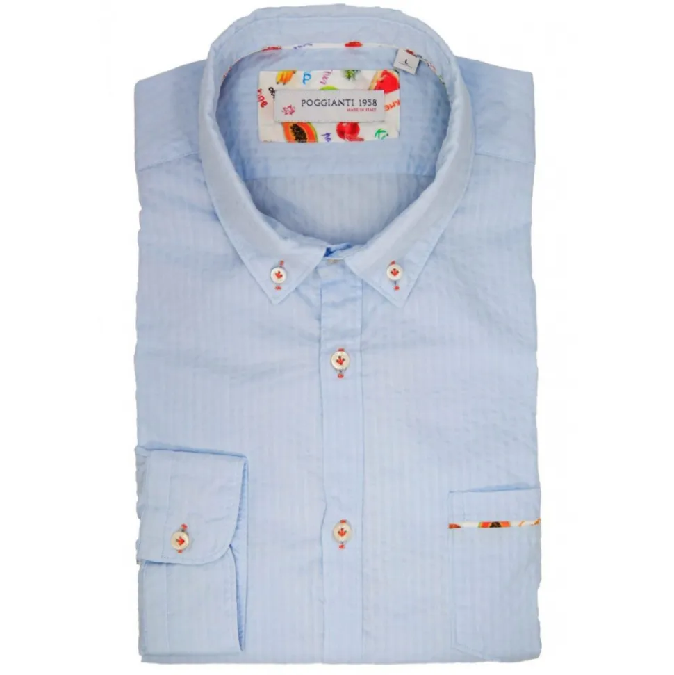 Poggianti 1985 – Plain Light Blue Shirt with Soft Collar – Handmade in Italy – New Luxury Exclusive Collection