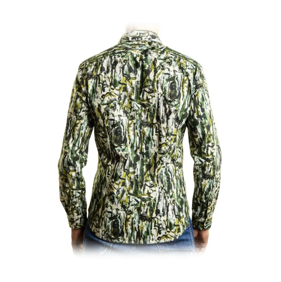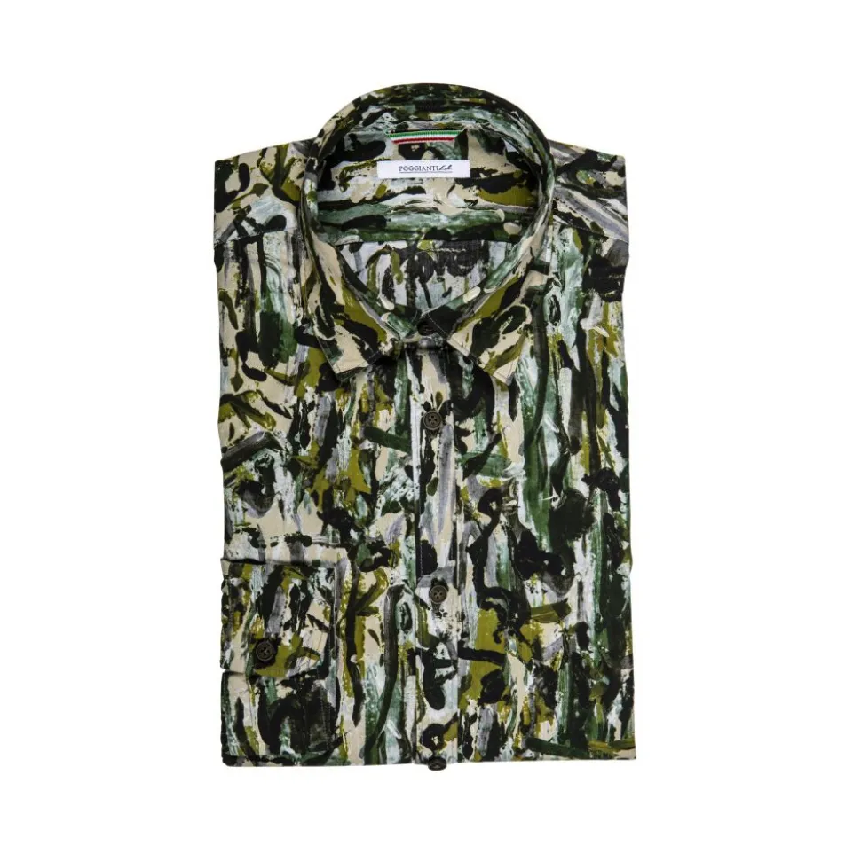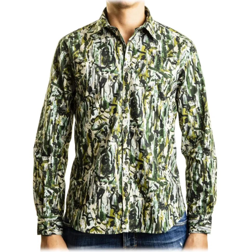 Patterned cotton shirt with shades of green. Buttons in tone. Fabric composition 100% Cotton. Made in Italy.