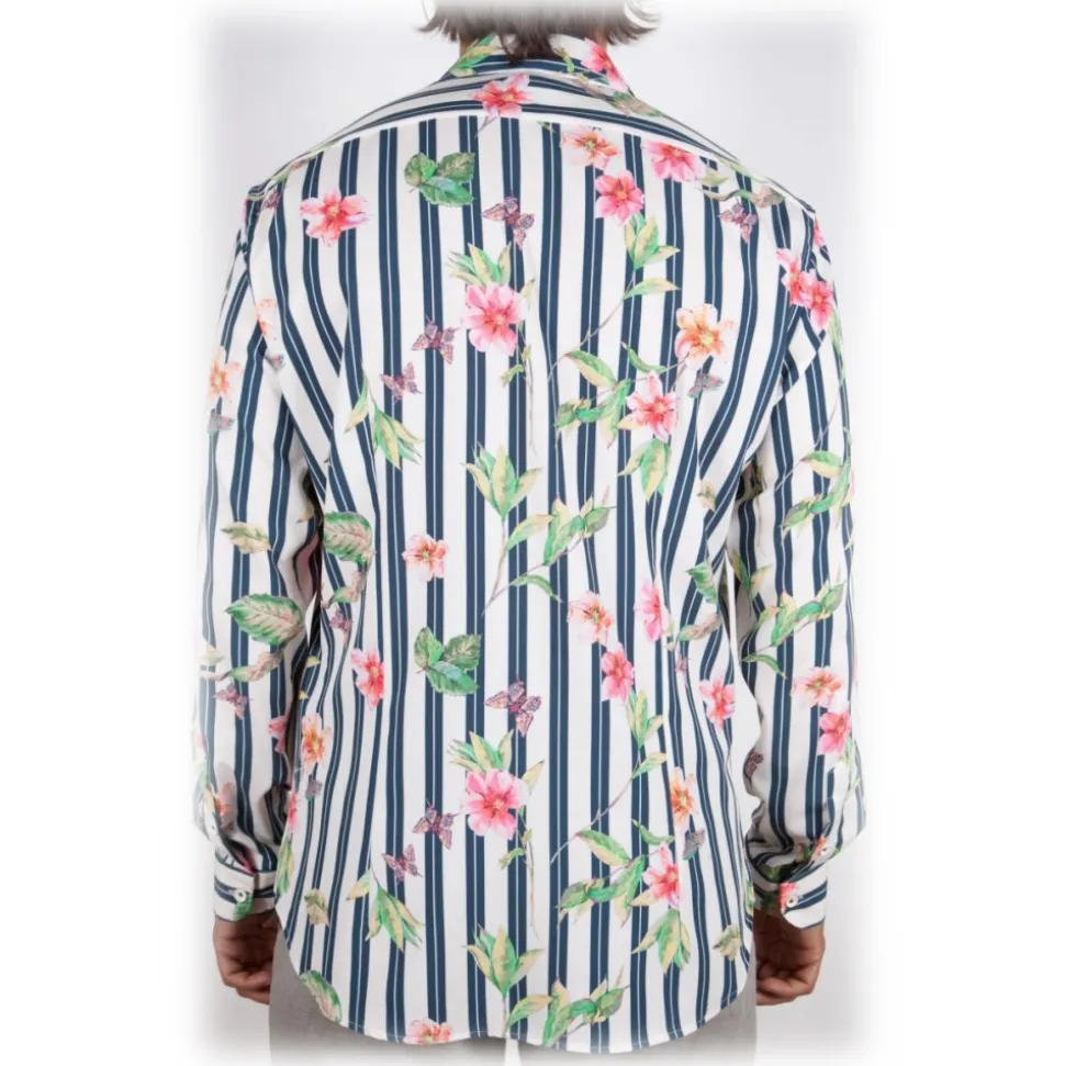 Poggianti 1985 – Striped Shirt with Floral Pattern Soft Collar – Handmade in Italy – New Luxury Exclusive Collection
