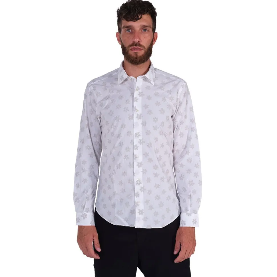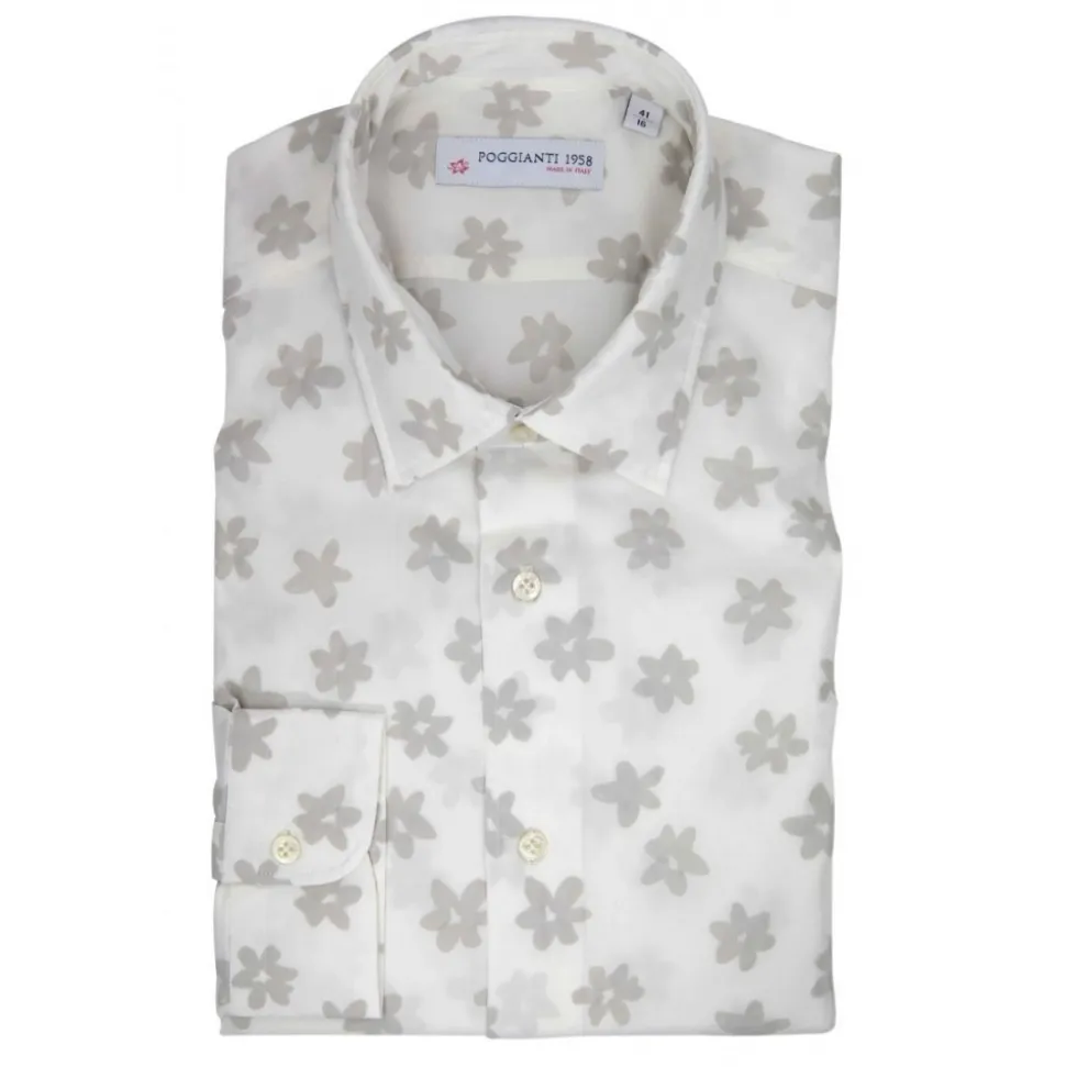 Poggianti 1985 – White Floral Shirt with Soft Collar – Handmade in Italy – New Luxury Exclusive Collection