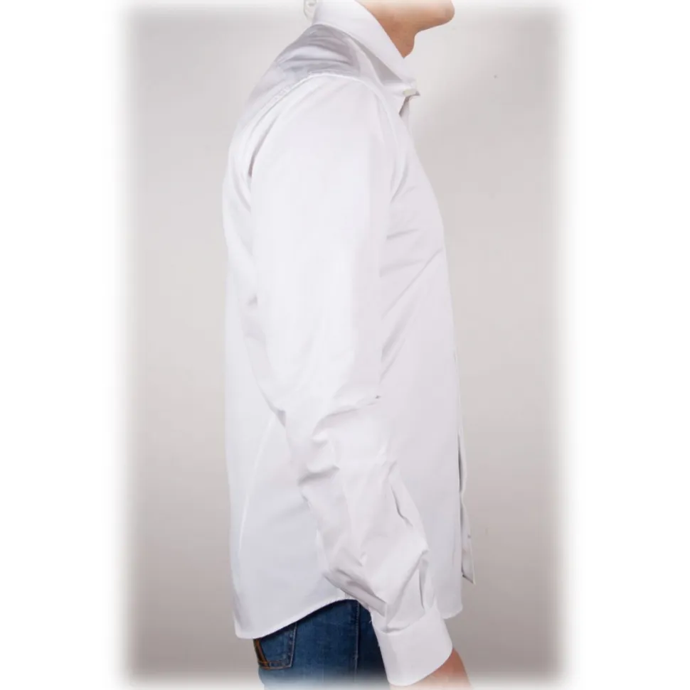Classic white shirt with Italian collar, slim fit sewn in the best sartorial tradition.