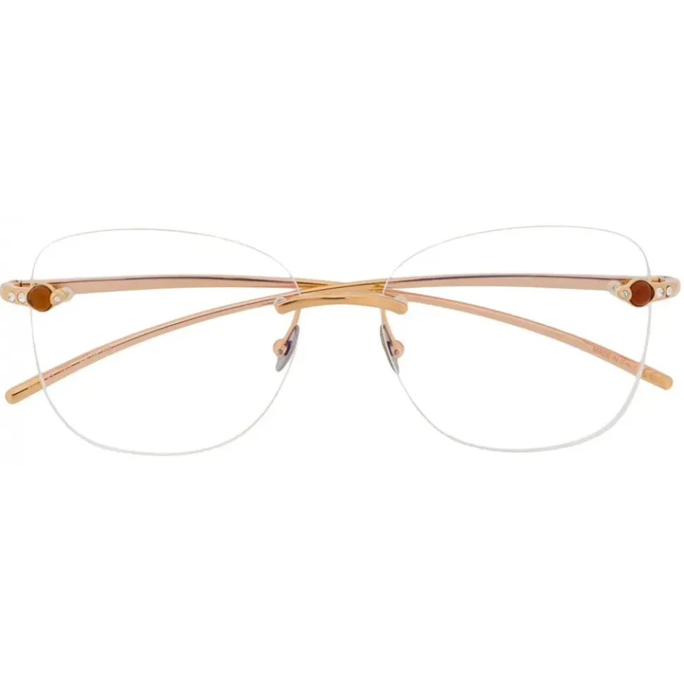 Gold-tone metal rimless glasses from Pomellato Eyewear featuring a logo at the temple and curved arms. This item is unisex. This item comes with a protective case.