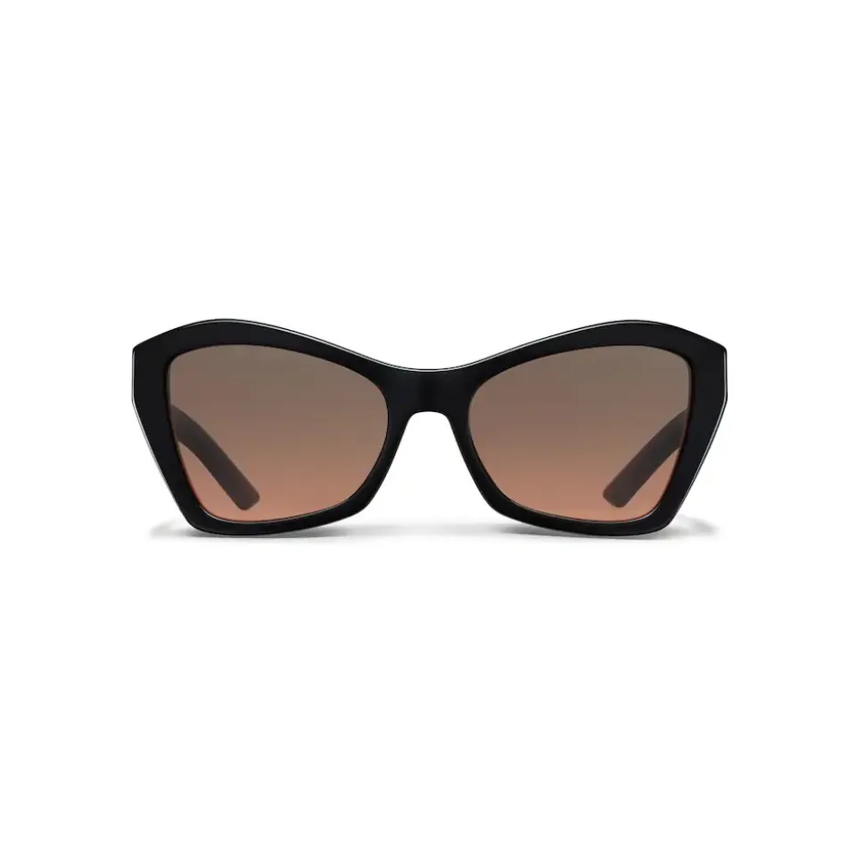 Prada Disguise sunglasses characterized by a sophisticated cat-eye design and bold lines. The frame comes in an exclusive palette of colors with temples defined by graphic motifs printed on the inner side.