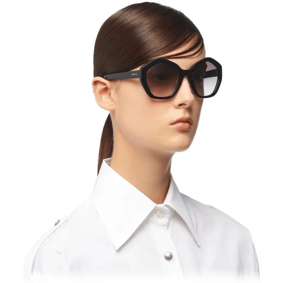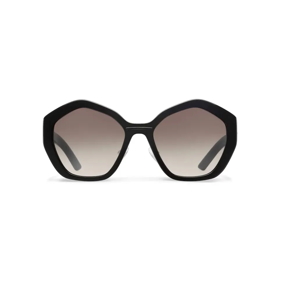 Oversized sunglasses with a refined, irregular design. The acetate frame is characterized by an elegant contrasting insert on the bridge. Prada lettering logo.