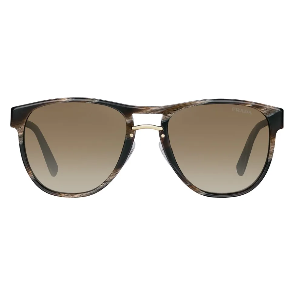 Square model with rounded lines. The sophisticated double deck with the underlying part in polished metal and visible details gives a contemporary appeal to the glasses. Logo Prada Lettering.