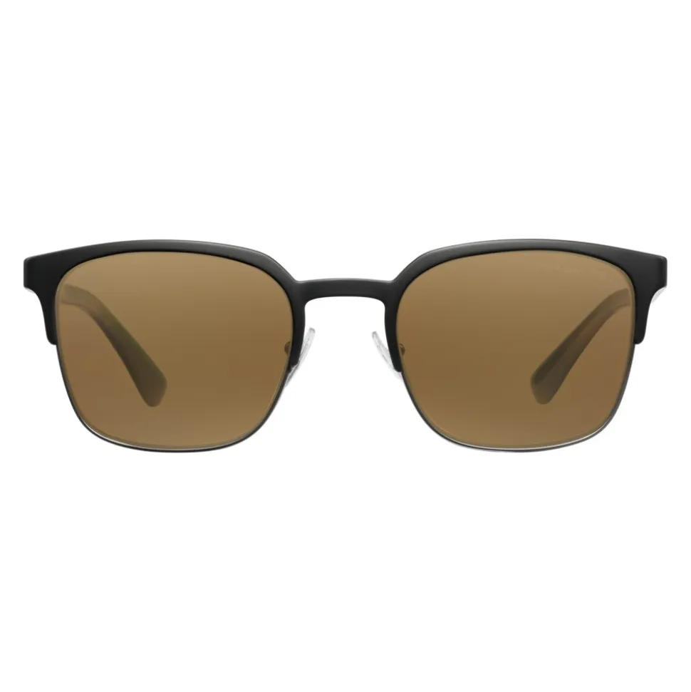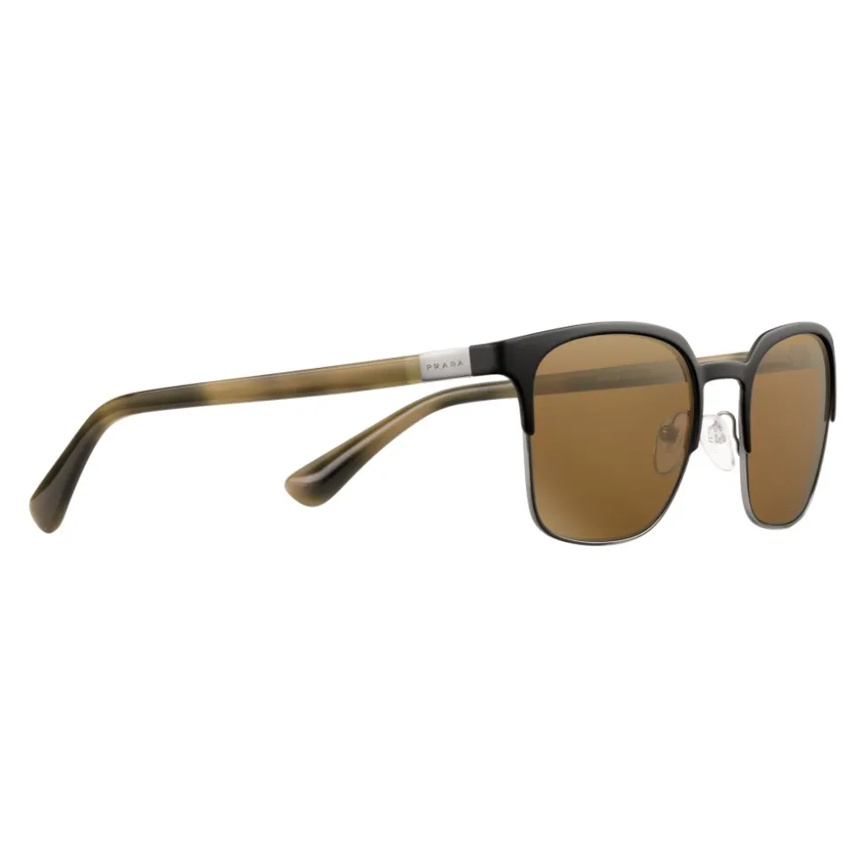 Male model characterized by the classic design of the square front. Upper profile in enamelled metal. Acetate linear temples with distinctive metal plaque and engraved Prada Lettering Logo.