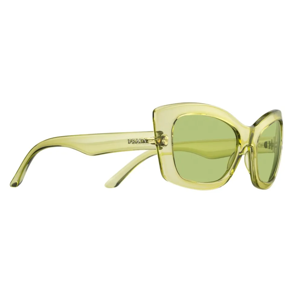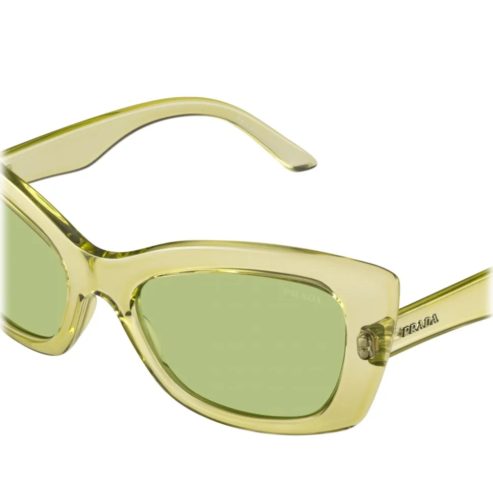 Pre-Fall Advertising Campaign Model 18. Exclusive re-edition of the iconic Prada Postcard, presented with a matching sunglasses case. Cat frontal badge made of transparent nylon and matching lenses.
