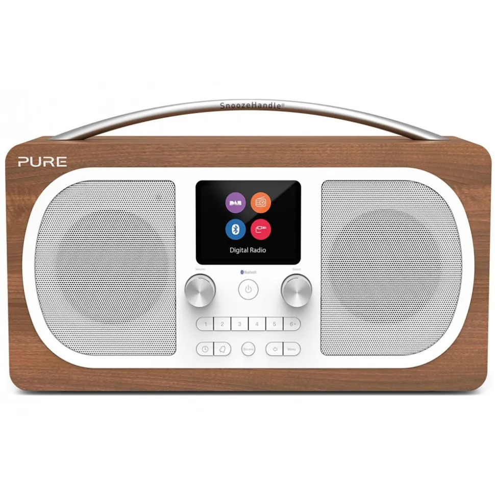 Evoke H6 combines the best of digital radio with wireless music streaming in superior stereo sound. Bluetooth connectivity and the latest in advanced audio technology from Pure will bring a new level of enjoyment to your device’s music and applications. The large, ultra-clear screen allows you to view radio programme information and artwork in full colour. Evoke H6 is available in a classic oak finish.