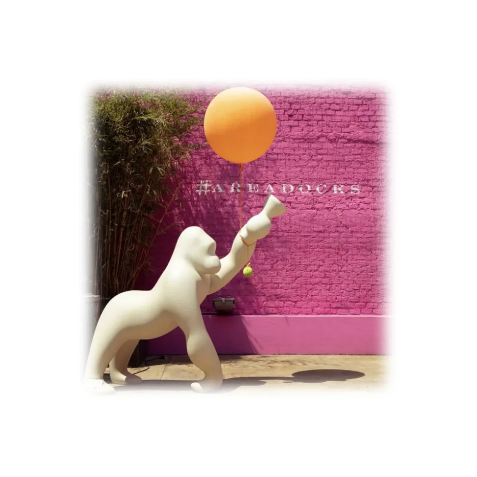 Giovannoni’s Kong is, surprisingly, technological and almost human. It shines in front of itself just as if the power went out. It’s out of scale to be a toy, out of scale to be a lamp, but it is also out of scale to be a gorilla.