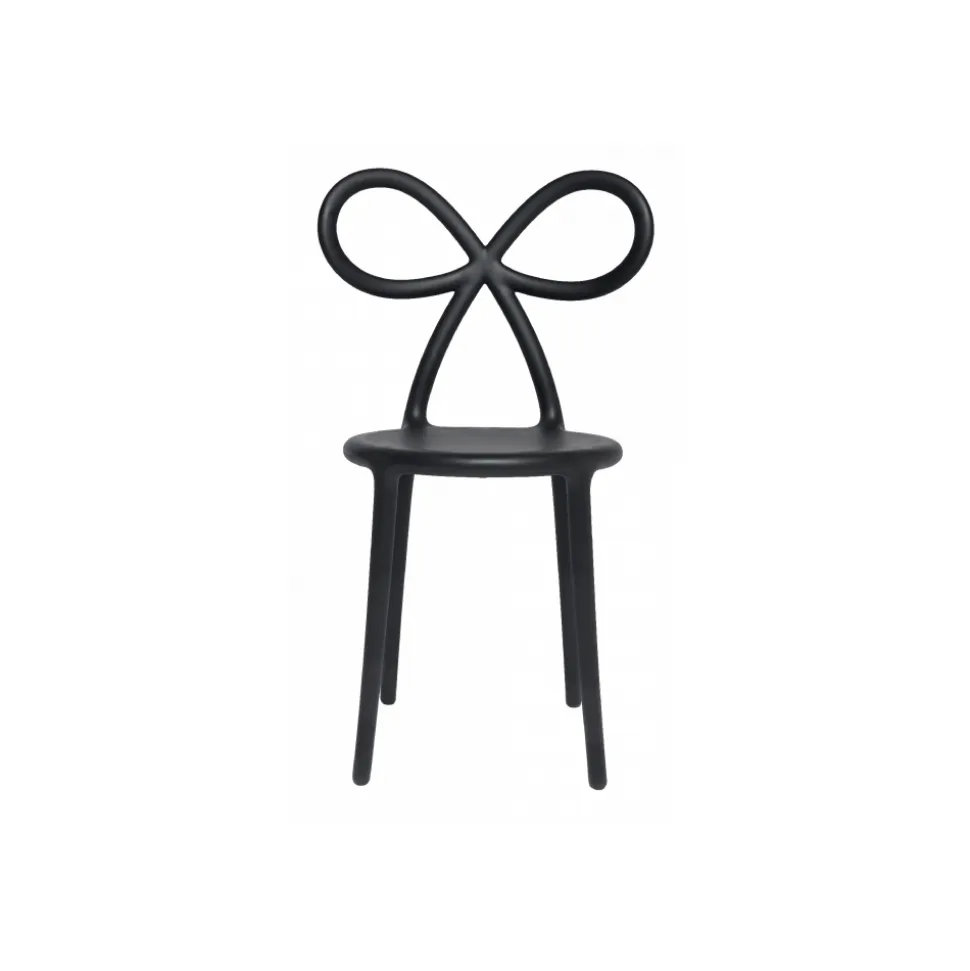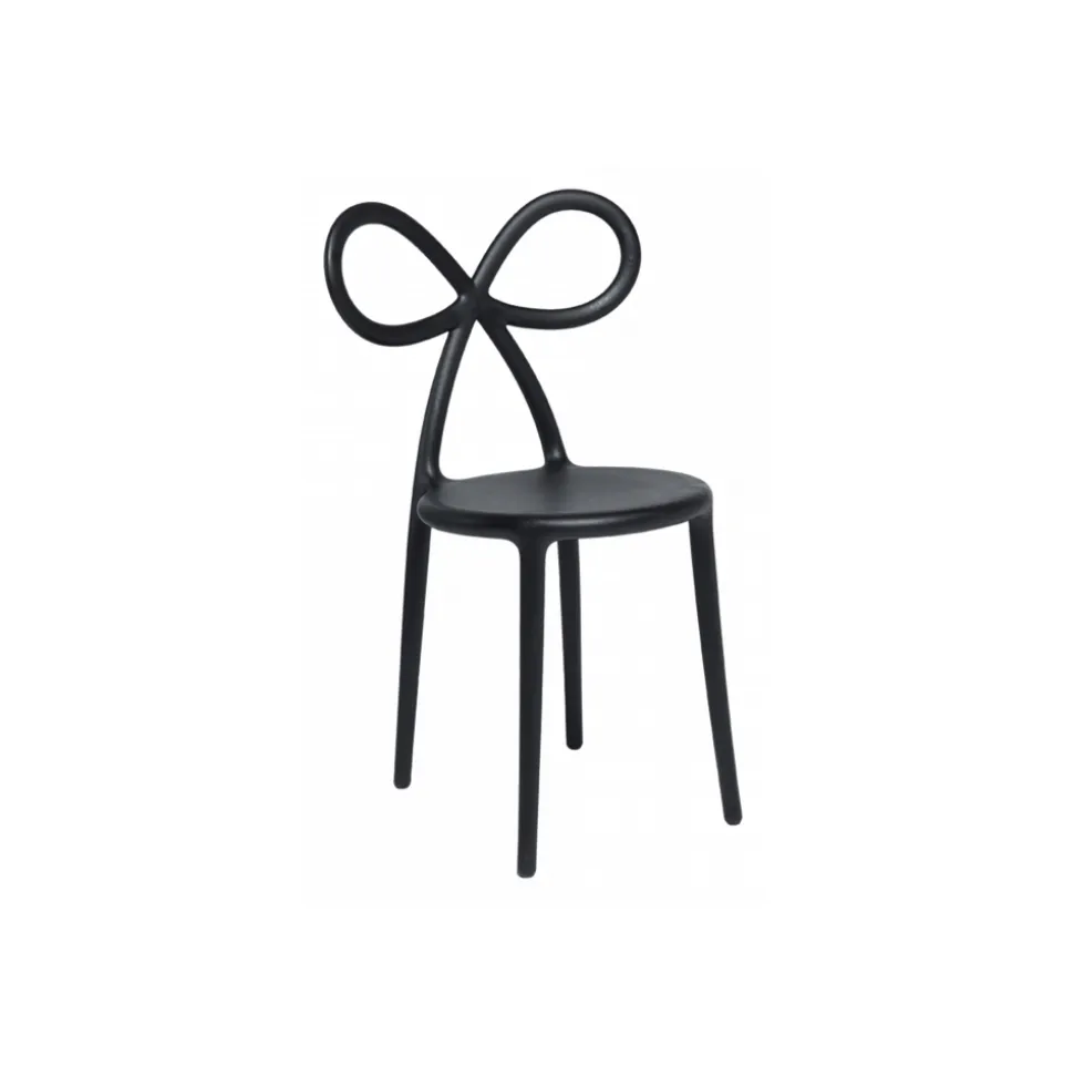 A successful chair, with a strong identity and characterized by a bow designed as a backrest. The bow, a lively symbol of gift and celebration, is translated by the designer with soft, light and essential lines.