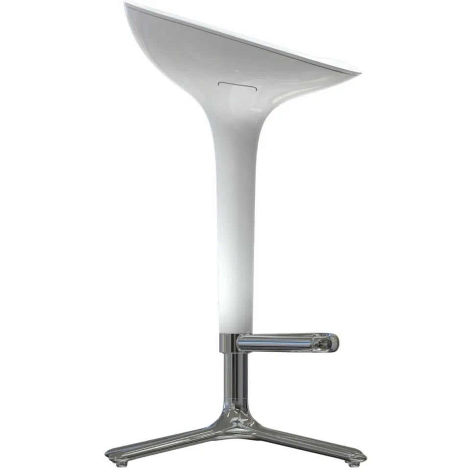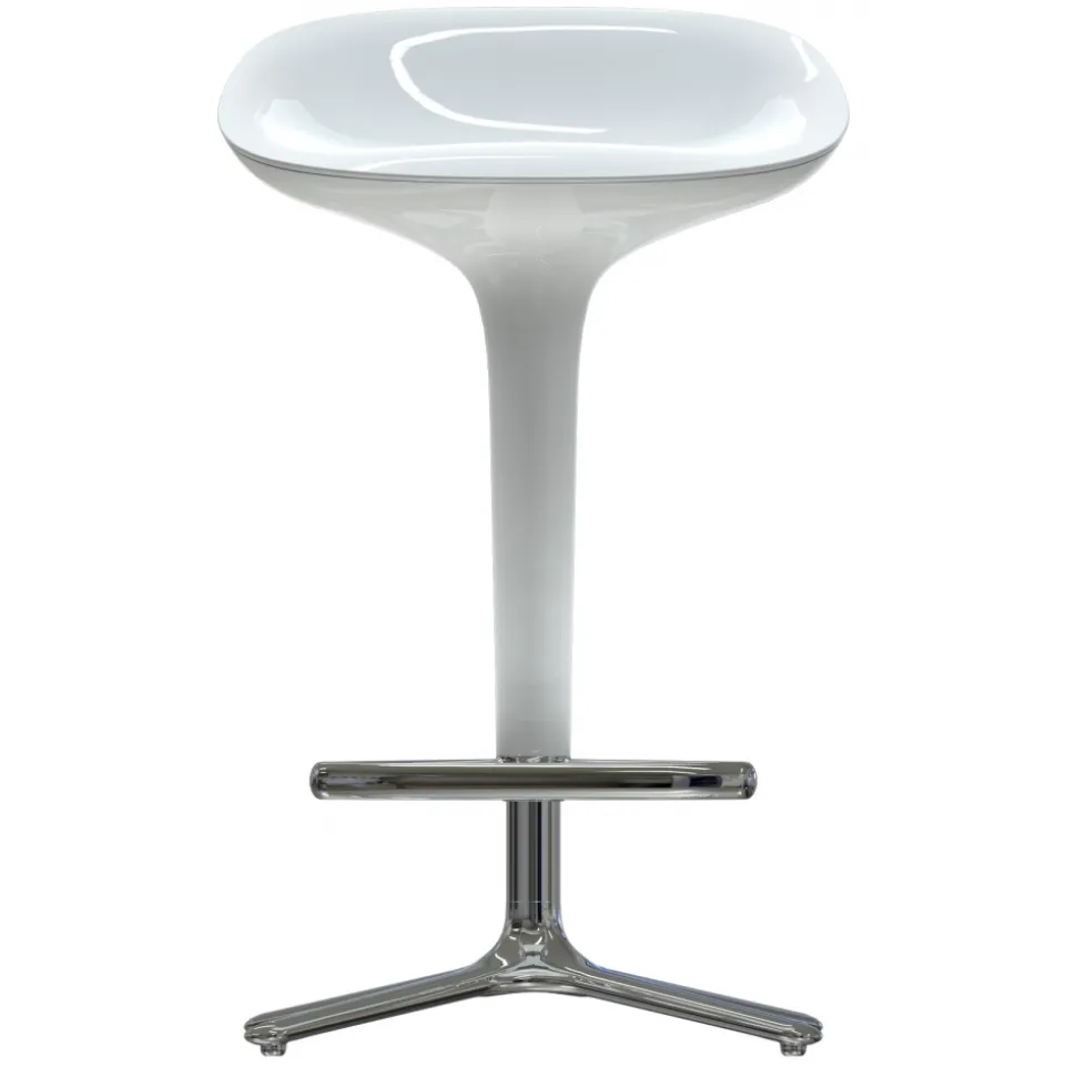 The Square is an adjustable stool where through a central piston. The upper part has a trapezoidal plant and is made of glossy white ABS while the lower part is a die-cast aluminum.