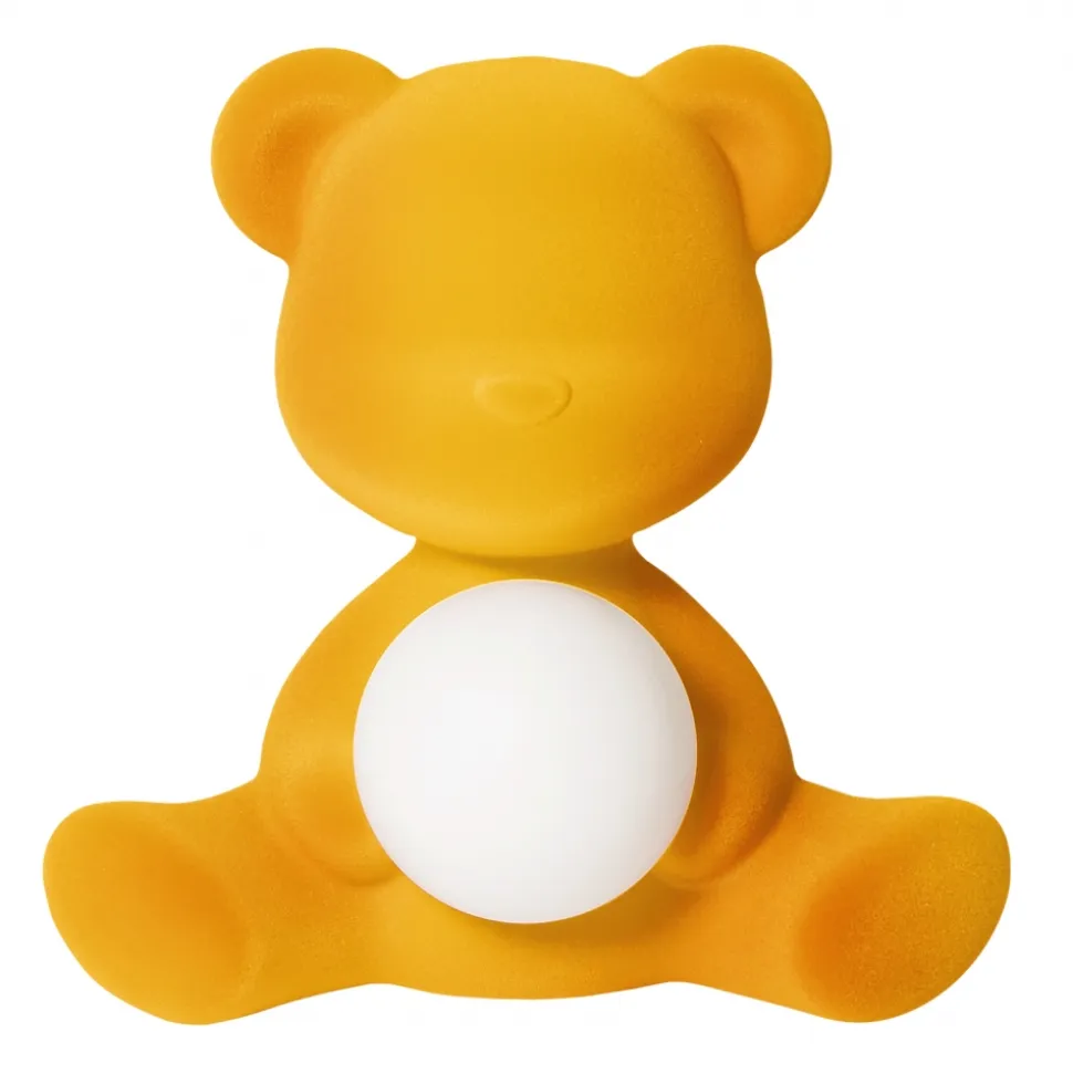 The teddy bear, the emotional object par excellence, is reinterpreted by Stefano Giovannoni for Qeeboo and becomes a table lamp. The new pop icon, tender, and fun at the same time was designed in two versions, Boy & Girl. Teddy Girl, more timid and delicate, brings to light the feminine soul of the famous little bear, embracing a small luminous sphere. The luminous bear thus expands the large Qeeboo family made of objects out of the ordinary which play with colors and different finishes. Teddy Girl is available in velvet – softer to the touch – in color variations ranging from warm to cold tones.