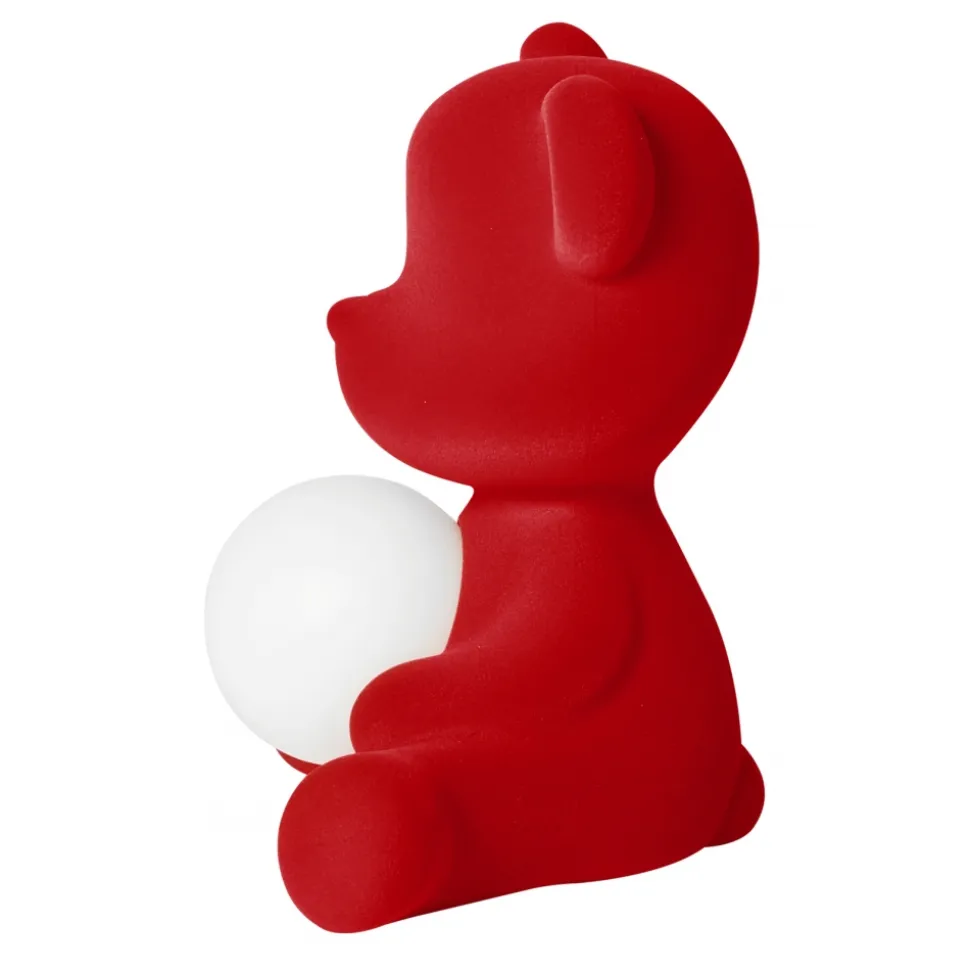 The teddy bear, the emotional object par excellence, is reinterpreted by Stefano Giovannoni for Qeeboo and becomes a table lamp. The new pop icon, tender, and fun at the same time was designed in two versions, Boy & Girl. Teddy Girl, more timid and delicate, brings to light the feminine soul of the famous little bear, embracing a small luminous sphere. The luminous bear thus expands the large Qeeboo family made of objects out of the ordinary which play with colors and different finishes. Teddy Girl is available in velvet – softer to the touch – in color variations ranging from warm to cold tones.