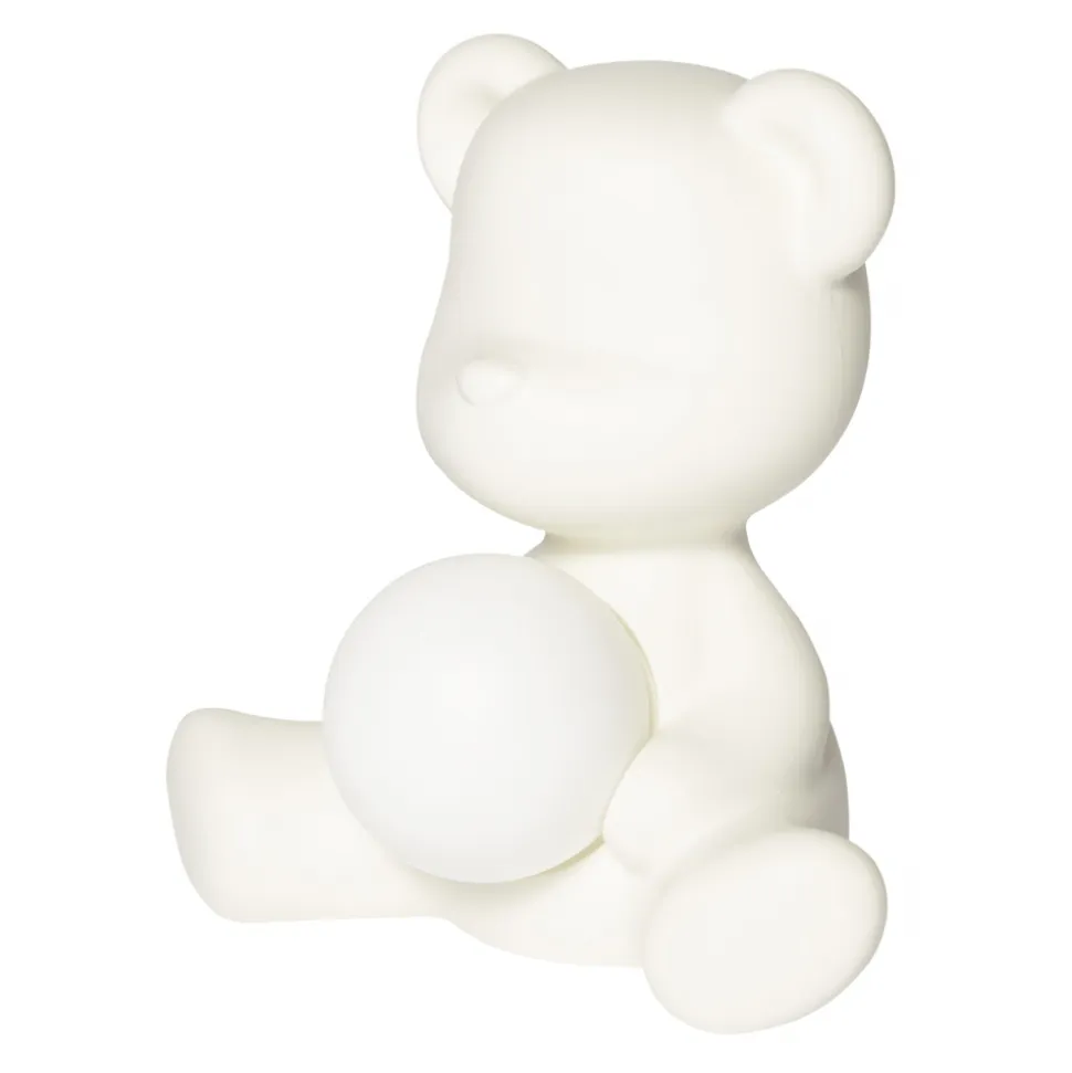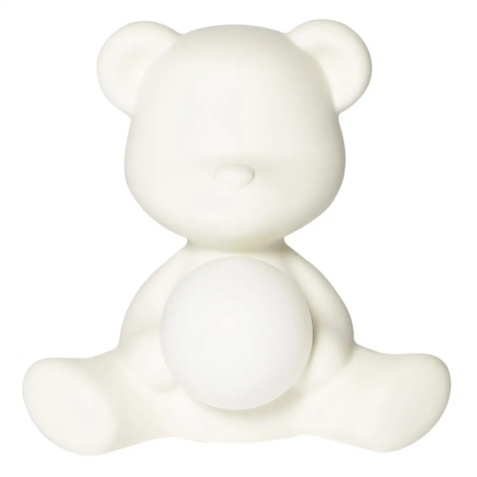 The teddy bear, the emotional object par excellence, is reinterpreted by Stefano Giovannoni for Qeeboo and becomes a table lamp. The new pop icon, tender, and fun at the same time was designed in two versions, Boy & Girl. Teddy Girl, more timid and delicate, brings to light the feminine soul of the famous little bear, embracing a small luminous sphere. The luminous bear thus expands the large Qeeboo family made of objects out of the ordinary which play with colors and different finishes. Teddy Girl is available in velvet – softer to the touch – in color variations ranging from warm to cold tones.