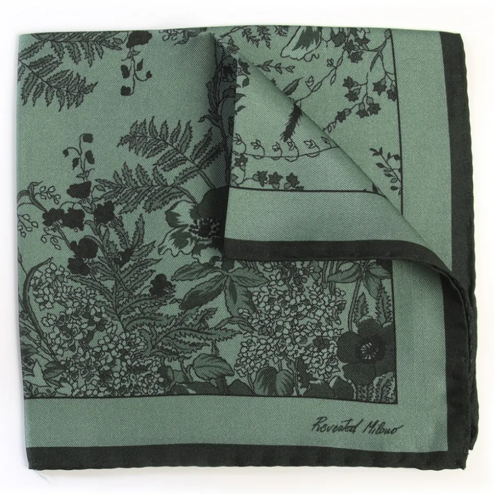 Revested Milano – Jardin – Sage – Pocket Square – Artisan Silk Foulard – Handmade in Italy