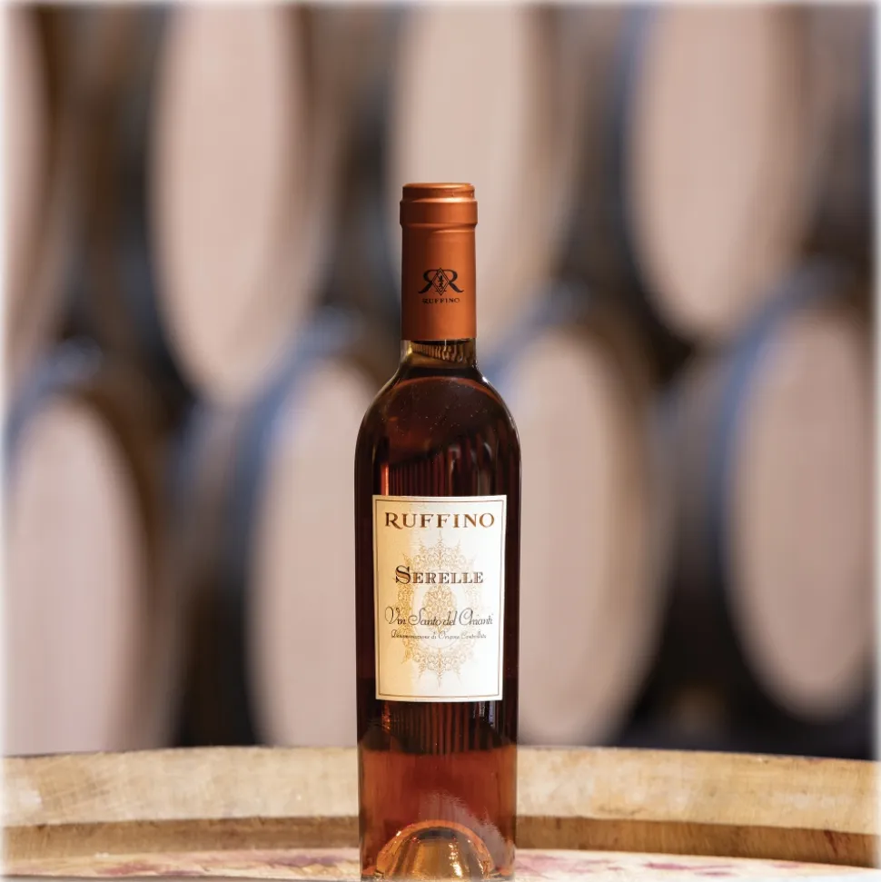 Serelle is the Vin Santo del Chianti of Ruffino, produced by drying on the trellis of Trebbiano and Malvasia in the evocative “vinsantaia” of Gretole. Although the first official mention of vinsanto in 1773, within the treaty of Cosimo Villifranchi on Tuscan wines (“Tuscan Oenology”), there is no doubt that this wine has been produced for centuries.
