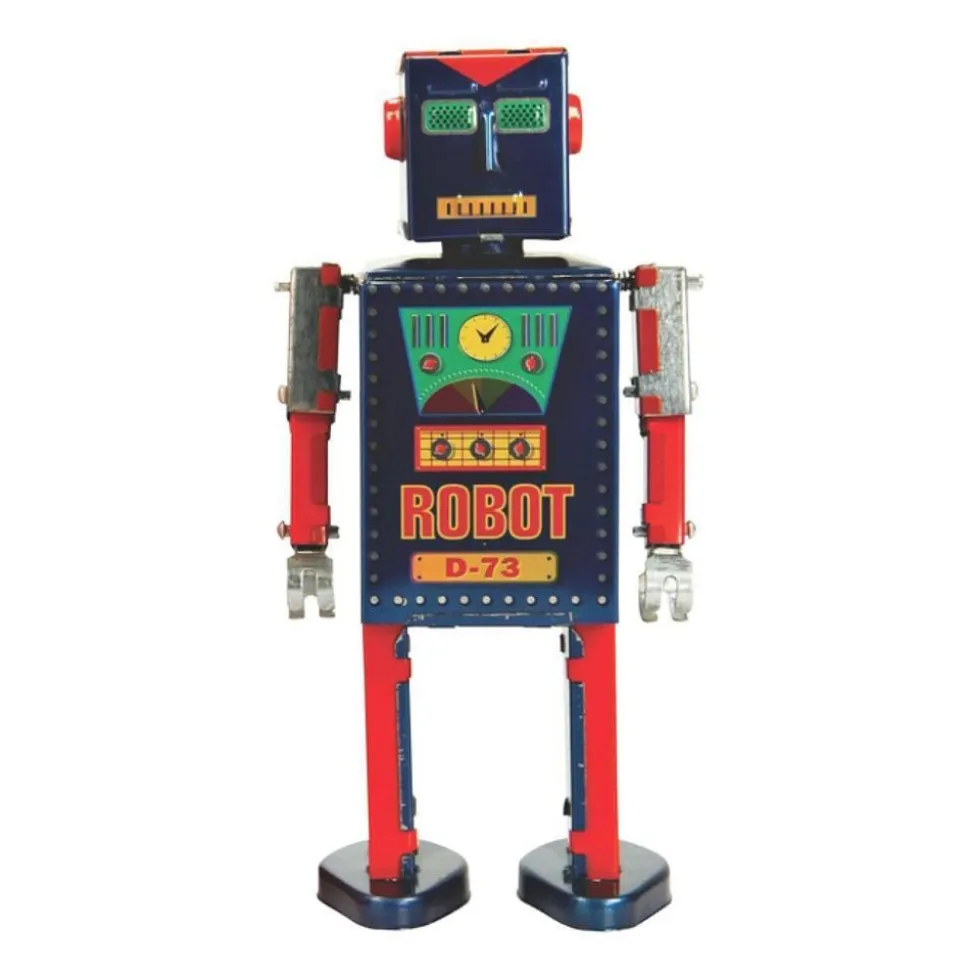 Saint John – D-73 Robot – Collectible Retro Wind Up Tin Toy – Red and Blue – Tin Toys