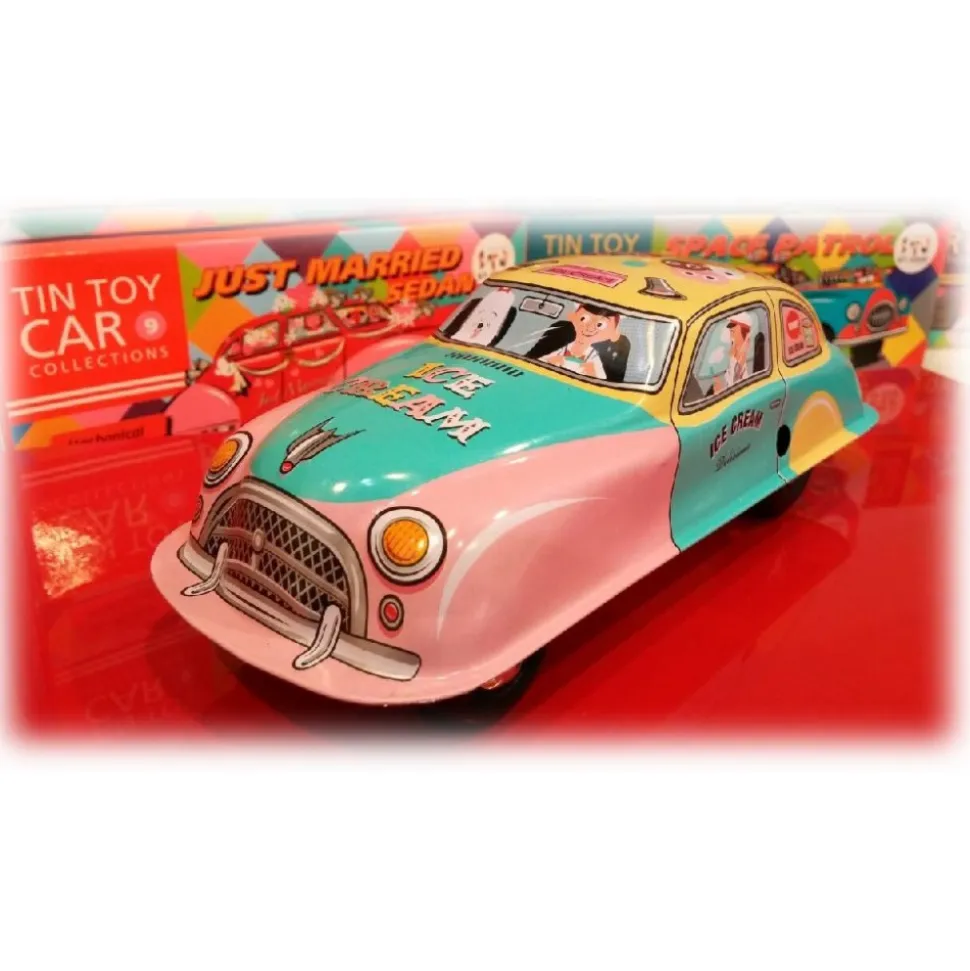 Unique, high-quality mechanical collectable Saint John made in the same way as the popular 1930s-1960s tin toys. Ice Cream Wagon Car Tin Toy.