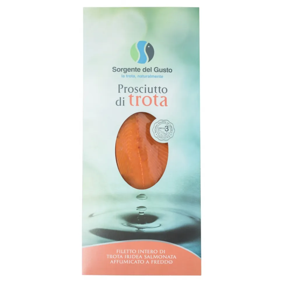 Also known as cold-smoked trout ham, the product is characterized by light salting and delicate smoking. These are fillets of Italian salmon trout, rich in amino acids and proteins that favor its digestibility.