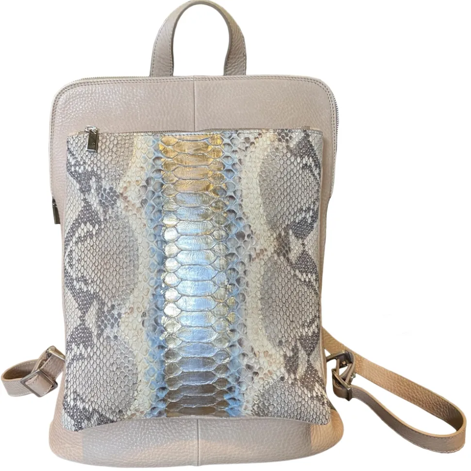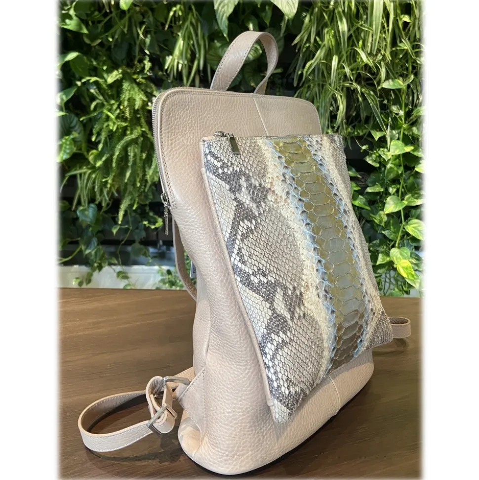 Suèi – Backpack in Python and Calf Leather – Rose Pale – Handmade in Italy – Luxury Exclusive Collection