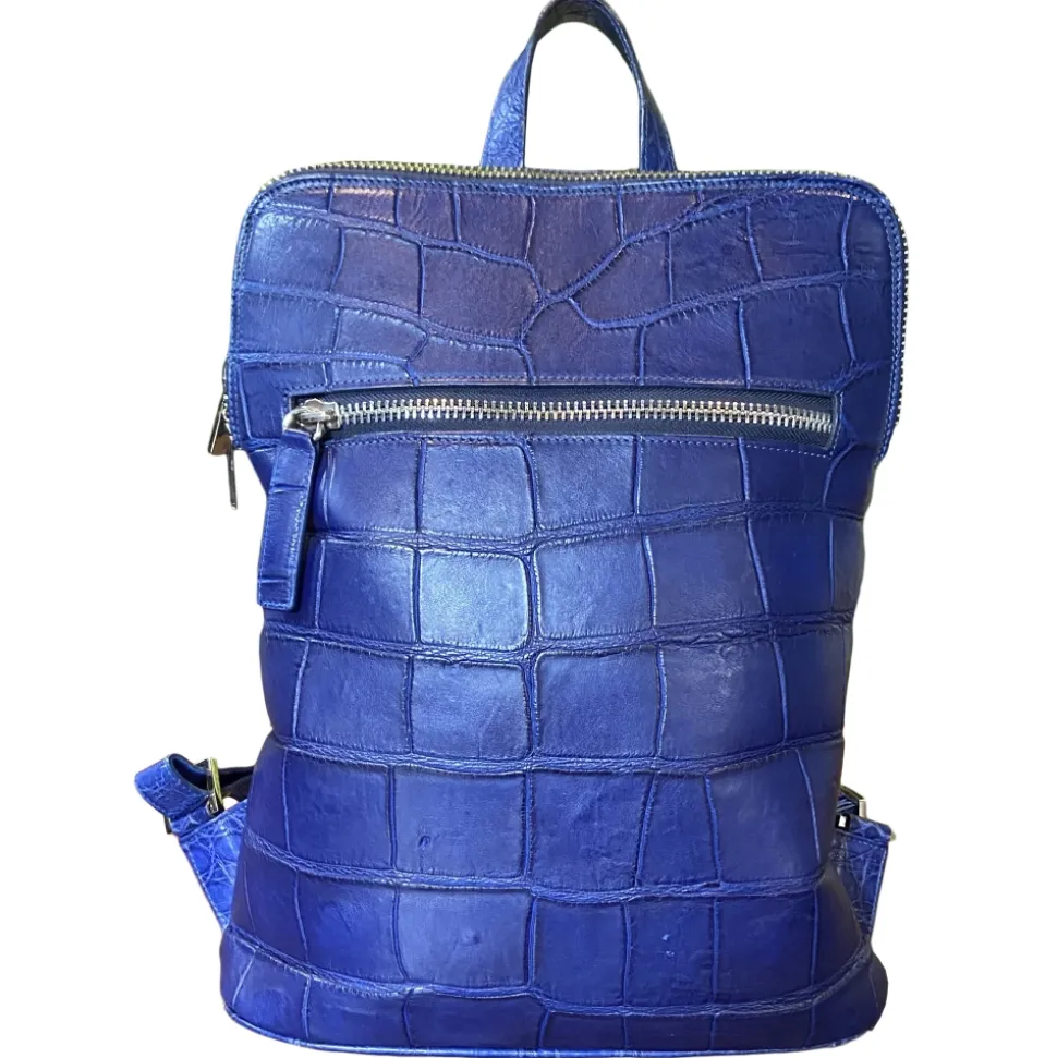 Crocodile leather backpack color Blue Electra, lining 100 % of leather/satin color Blue.