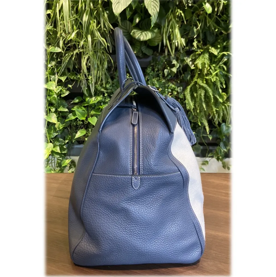 Suèi – Bag of Calf Leather and Canvas Fabric – Blue Navy – Handmade in Italy – Luxury Exclusive Collection