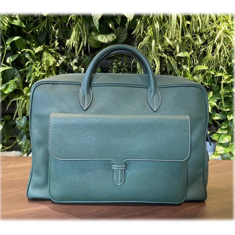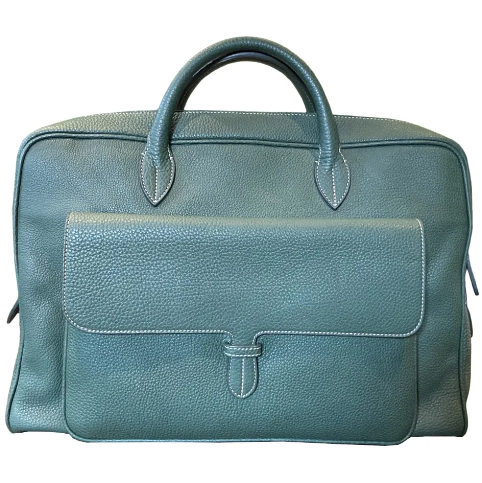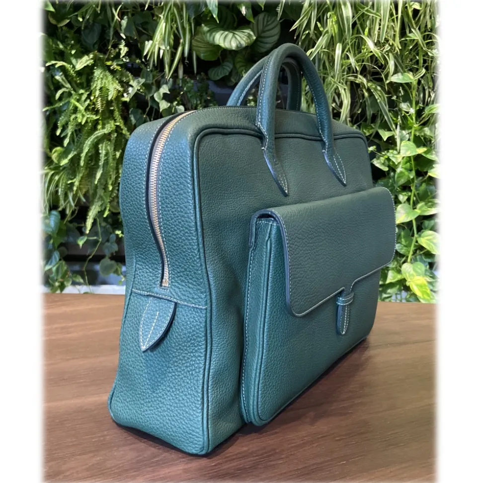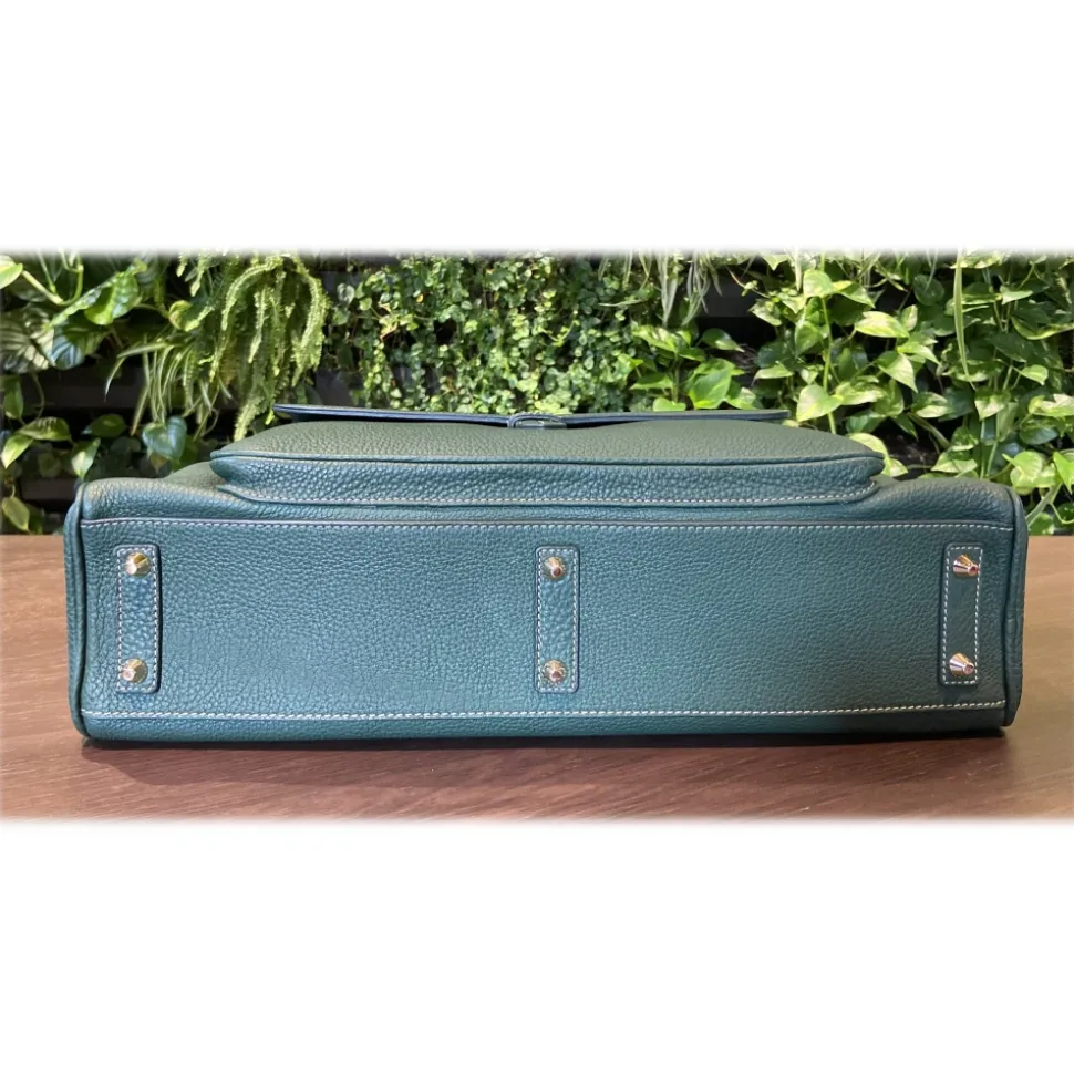 Bag carry-doc-pc of calf leather color Esmerald, lining 100 % of leather/satin color Green/Black/Red.