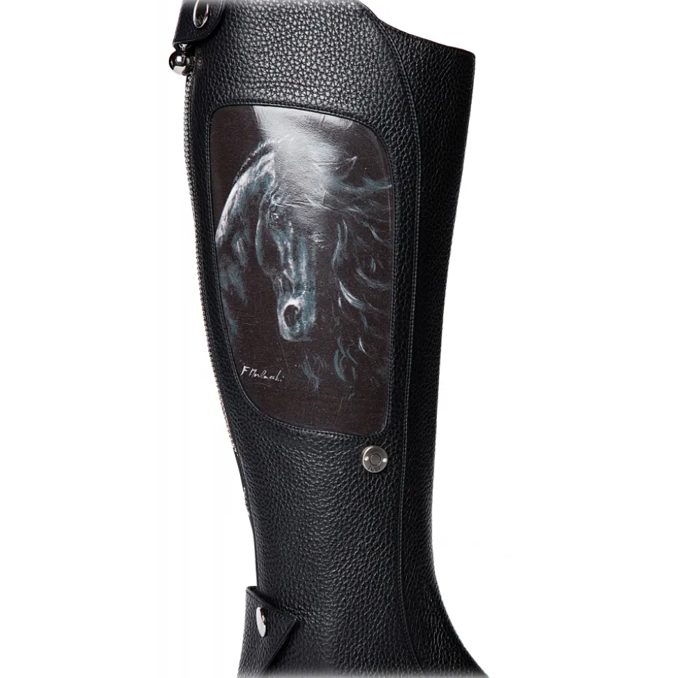 Suèi – Boots with Black Horse Art Printing – Black – Dark Brown – Handmade in Italy – Luxury Exclusive Collection