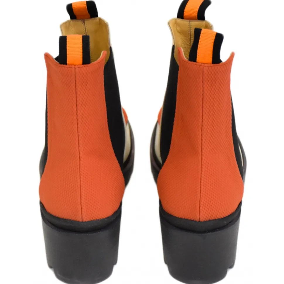 Chelsea Boots made of nabuck col Sand and tech fabrics col Coral with orange rubber 3D patch SUÈI col Orange, combined lining in natural merinos col Orange and Beige leather, soles in transparent Black TR. Made in Italy.