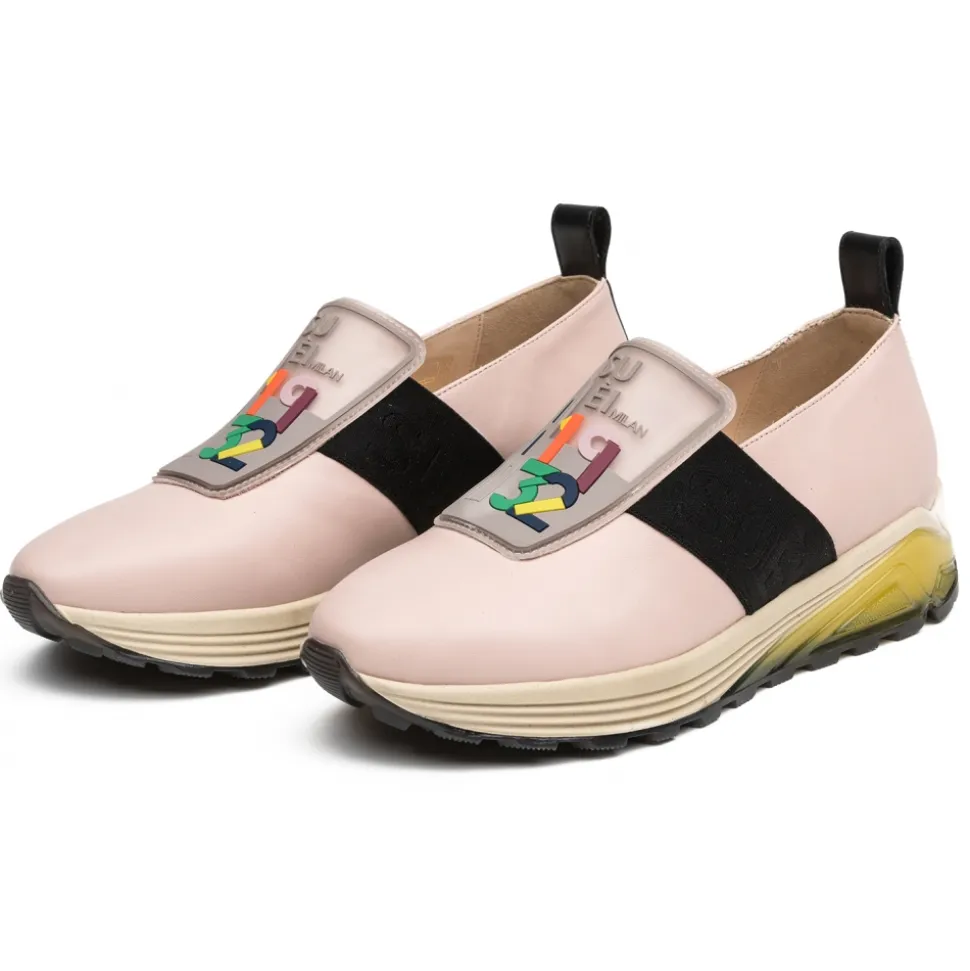 Loafers made of calf leather cool Rose Pale with patch in silicon SUÈI-Milan1932, leather lining color Beige, soles in 3-color TR. Made in Italy.