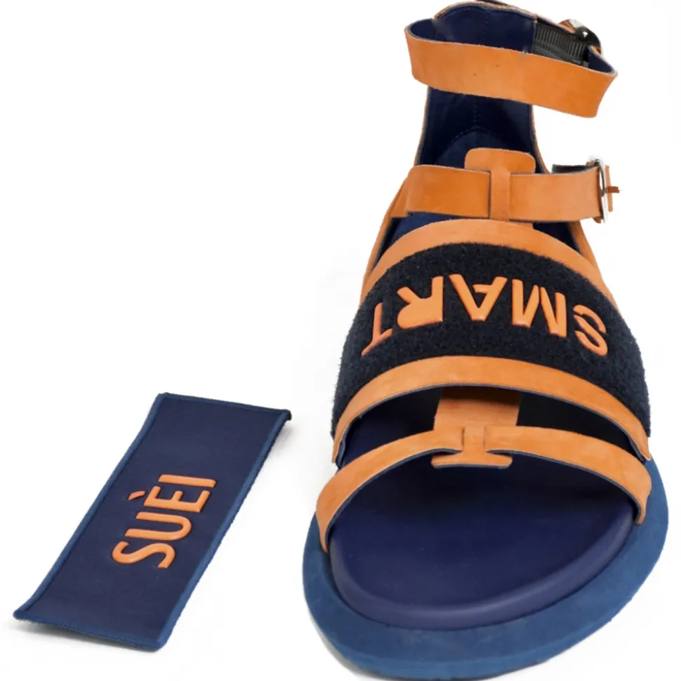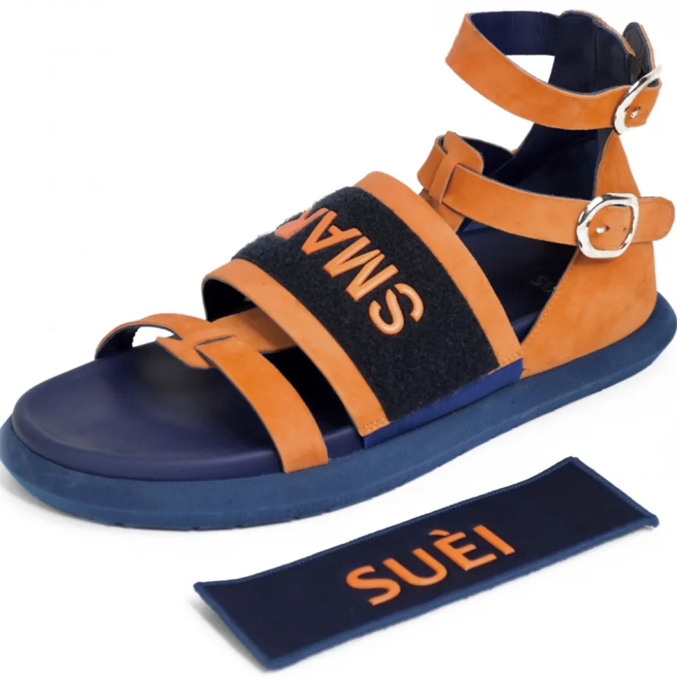 Suèi – Sandals With Velcro Smart/Suèi – Mandarino – Blue – Handmade in Italy – Luxury Exclusive Collection