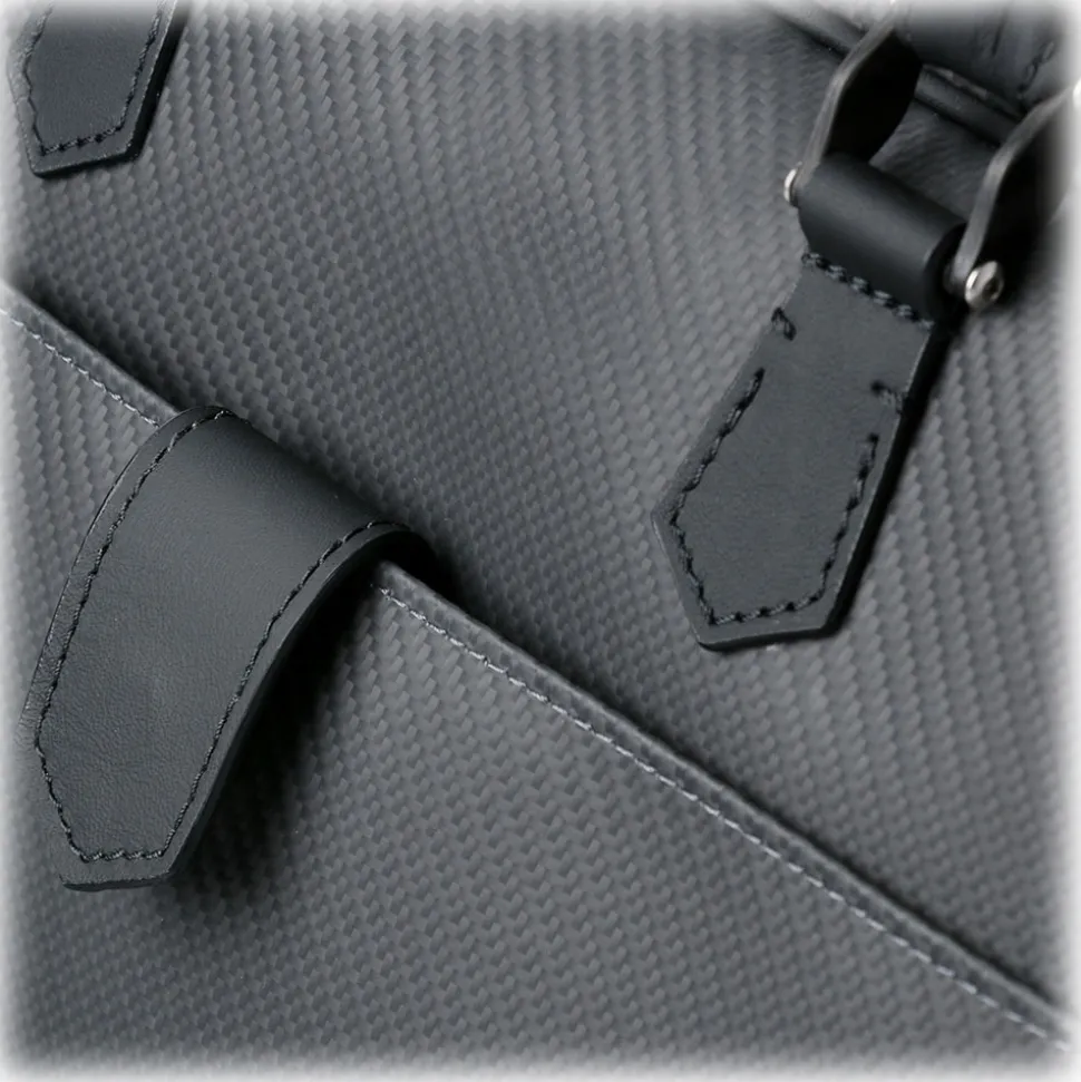 Exclusive business bag in pure aeronautical carbon fiber and leather. Handcrafted in Italy, the Black Carpet special edition is created using the same materials used in Lamborghini super sports cars, pure aeronautical carbon and high quality leather. Black.