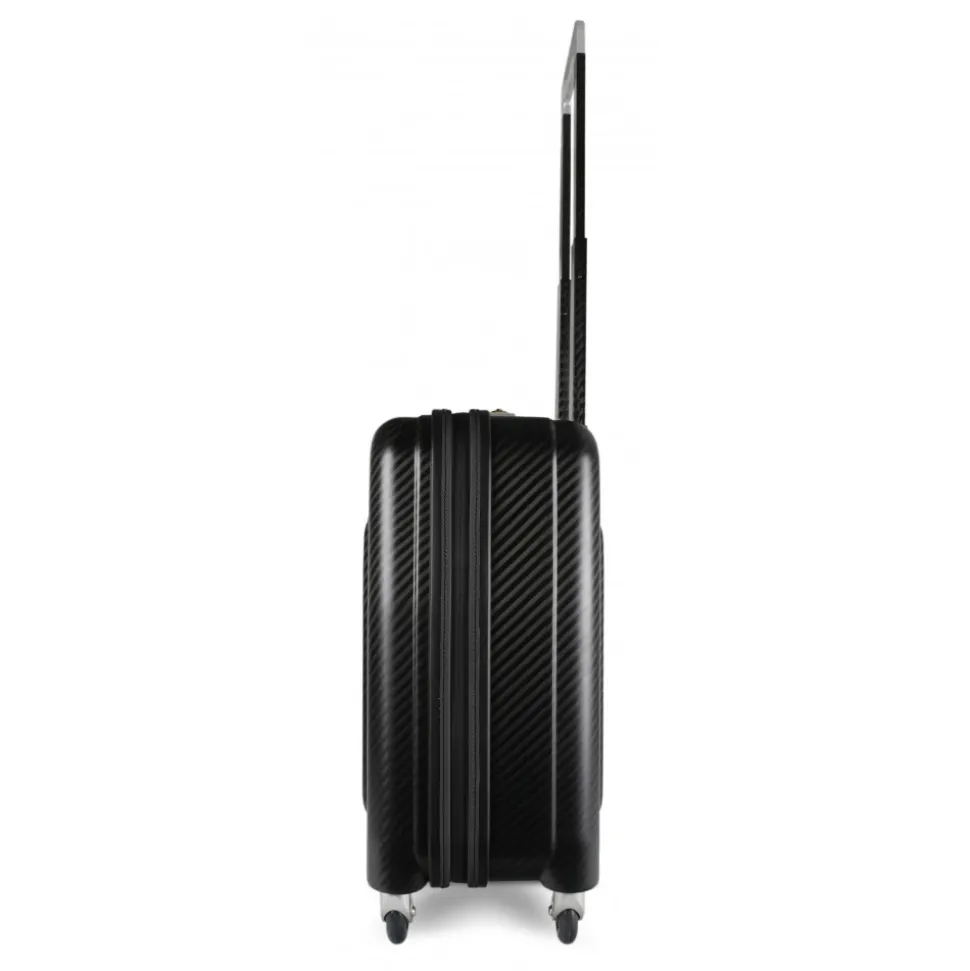 Carbon Fibre Trolley Glacies, forged in autoclave with zipper on top and aluminium details and two leather strap buckles.