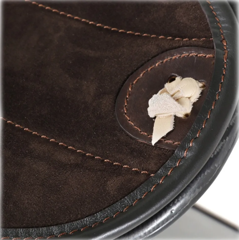 Mini seat in Carbon Fibre Opal Glacies with pillow cover sitting and suede leather finishings in dark brown colour and natural leather hand made knots.