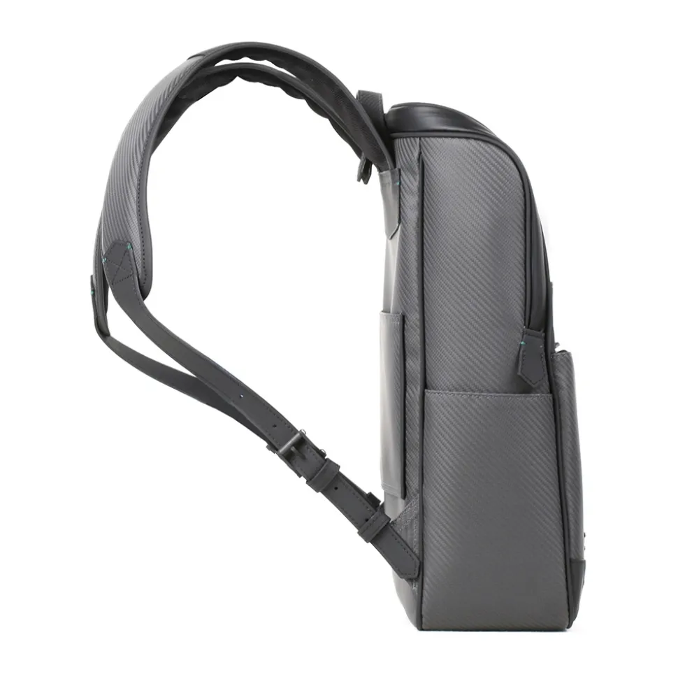 Ultralight Backpack in Carbon Fibre Nix with handle and hand made leather details. All HiTeck sockets are in Carbon Fibre Glacies.