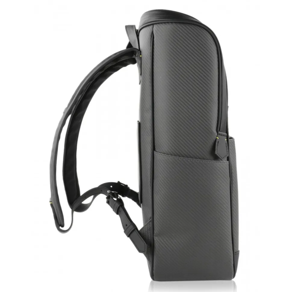 Ultralight Backpack in Carbon Fibre Nix with handle and hand made leather details. All HiTeck sockets are in Carbon Fibre Glacies.