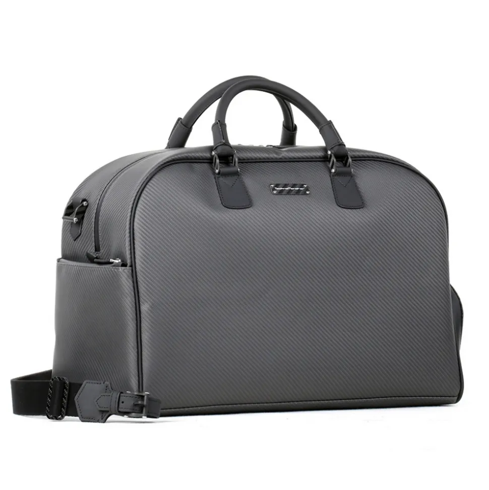 Exclusive business bag in pure aeronautical carbon fiber and leather. Handcrafted in Italy, the Black Carpet special edition is created using the same materials used in Lamborghini super sports cars, pure aeronautical carbon and high quality leather. Black.