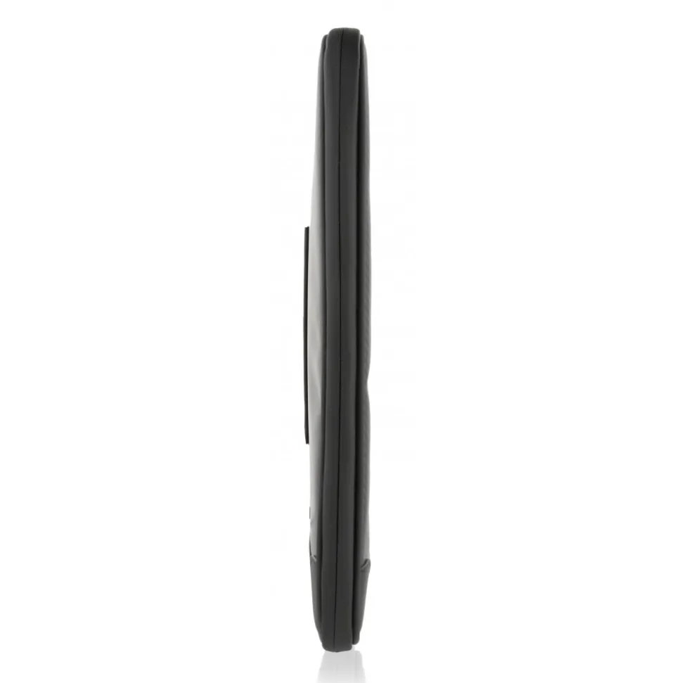 Document holder in Carbon Fibre Nix opening entirely equipped with TKSS bulletproof protection. Plate logo with Carbon Fibre Glacies. Hand made leather details.