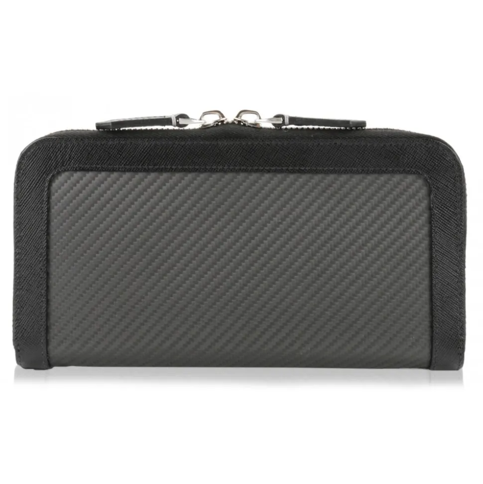 Cluch bag in Carbon Fibre Nix with details and black Saffiano leather interiors and zipper.