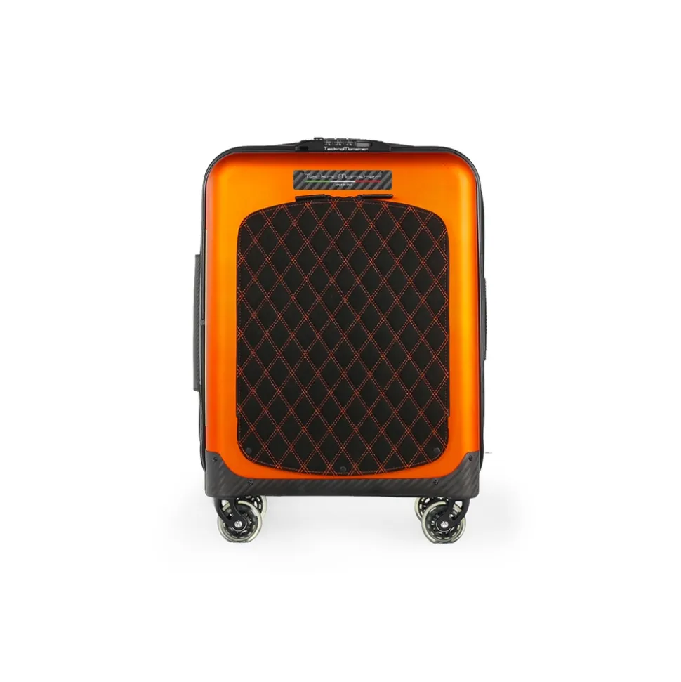 TecknoMonster – Trolley Akille Flap Orange in Carbon Fiber – Aeronautical Carbon Trolley Suitcase