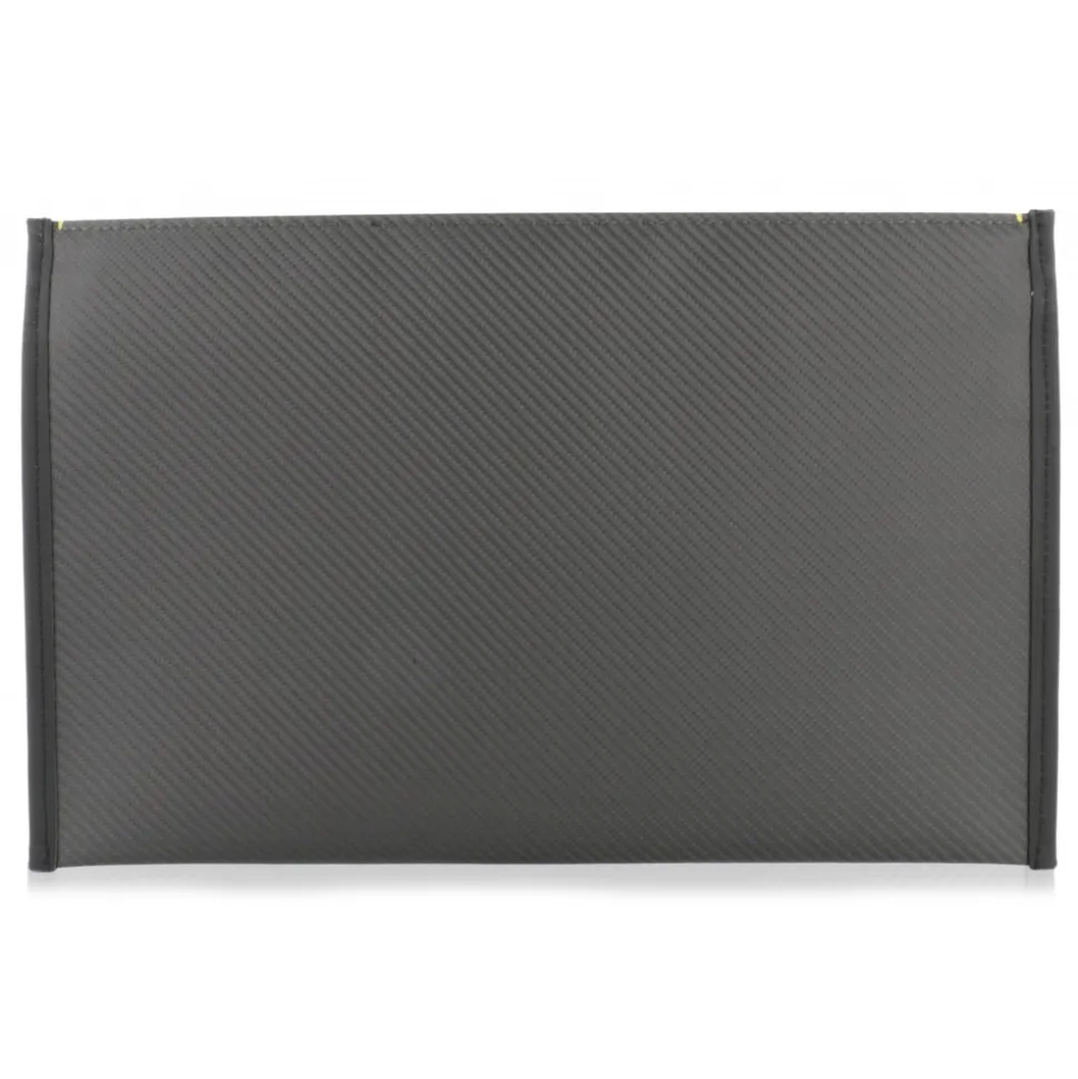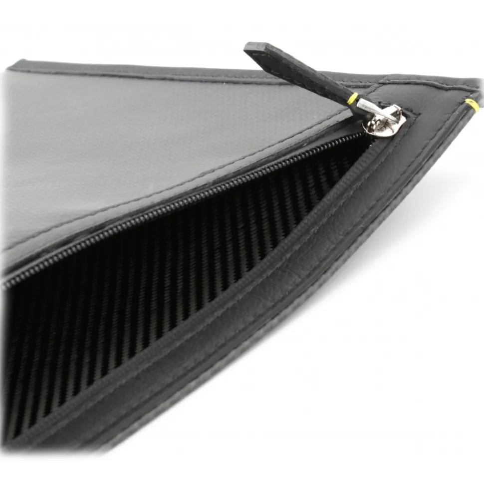 Envelope in Carbon Fibre Nix, ultra thin and ultralight. Hand made leather details. Plate logo with Carbon Fibre Glacies.