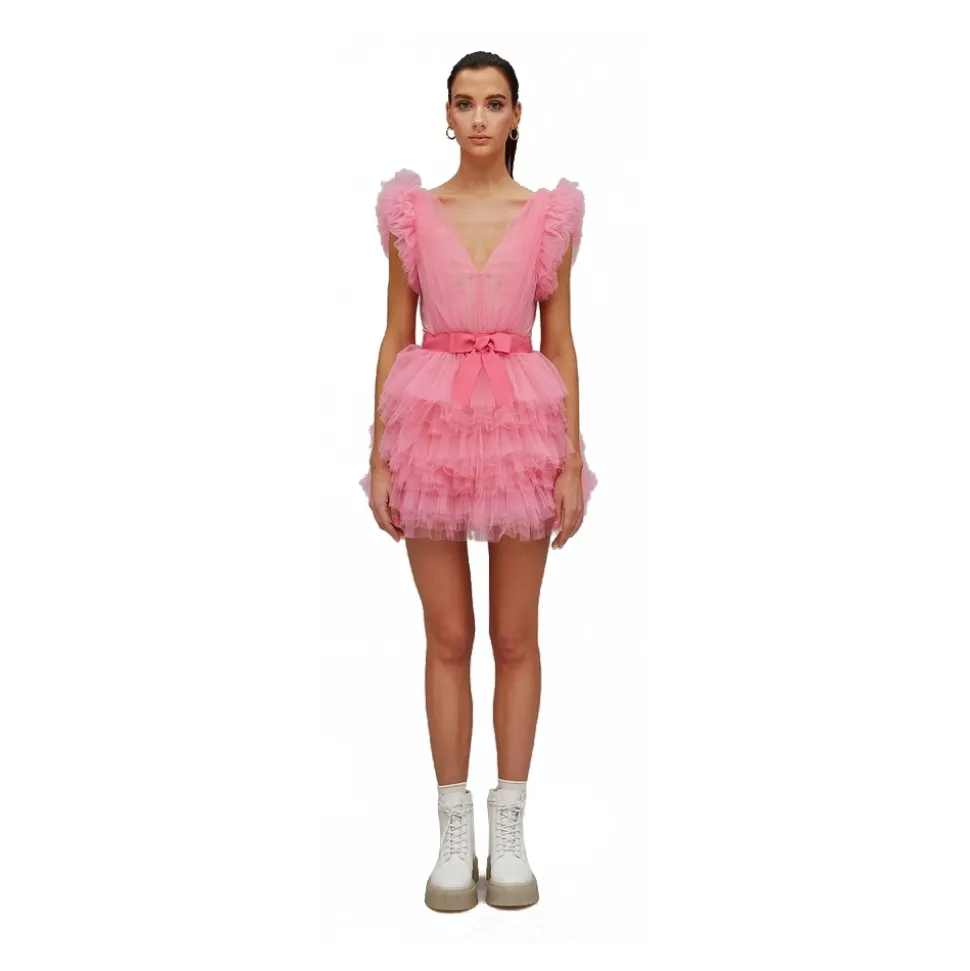 Teen Idol – Orione Tulle Mini Dress with Shoulders – Pink – Dresses – Teen-Ager – Luxury Exclusive Collection