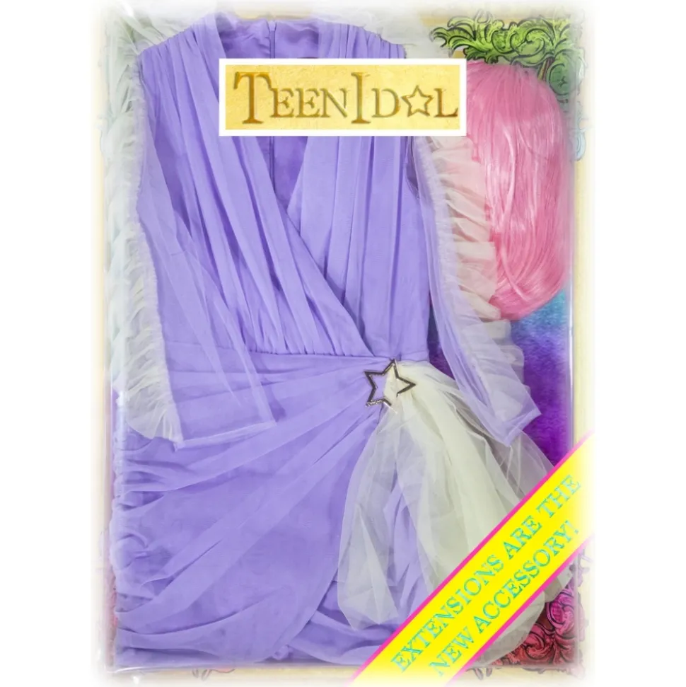 Teen Idol is a women’s clothing brand for a Teen-Ager audience by age and attitude. The collection mainly focuses on Mini dresses in fluttering tulle, along with t-shirts, shorts, sweatshirts, jumpsuits, skirts and jackets, all with an ultra-contemporary style. Each dress comes with a matching wig, our motto is “extensions are the new accessory”! Moreover, the dress collection is combined with other fun and ultra-glamorous accessories such as: scrunchies, hair clips, personalized chains… and much, much more. The atmosphere that Teen Idol is recreating is enchanting, like a doll’s world, brought to life thanks to special packaging inspired by the box of an iconic Blonde Doll, that magically opens revealing a playful and fun imagination space. Teen Idol is the new fashion icon for all Teen-Agers!