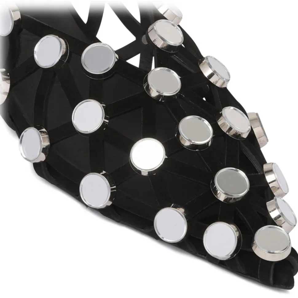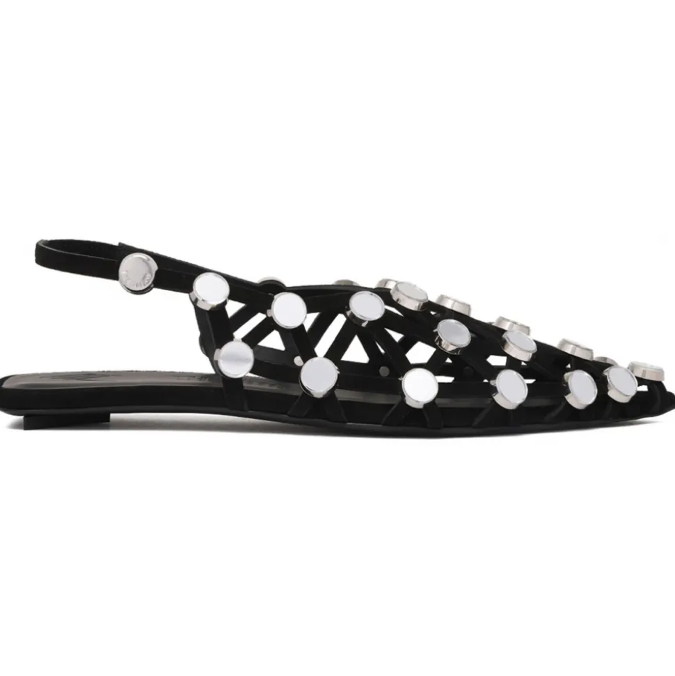 The Attico Black Grid Ballerina Shoes. ”Grid” ballerina in black suede with mirror application, height 05mm.