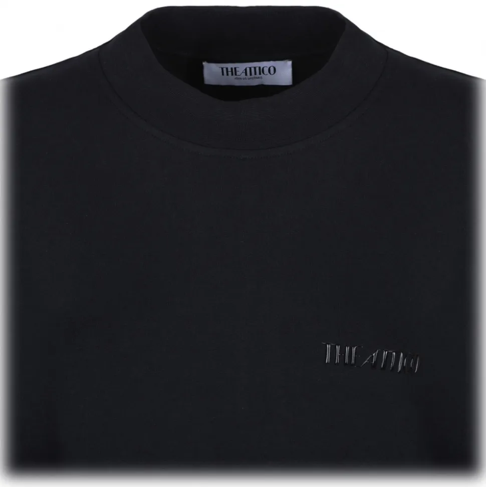 The Attico Black Mini Dress. Black cotton mini dress, slip-on style, crew neck, long sleeves, straight hem.