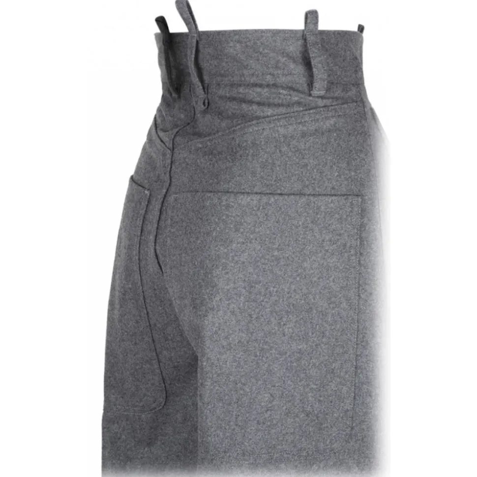 The Attico Grey Wide Leg Trousers. Grey wool trousers, melange effect, wide leg. Front zip fastening, pleat detailing, disc detailing, belt loops. Side patch pockets and two rear patch pockets.
