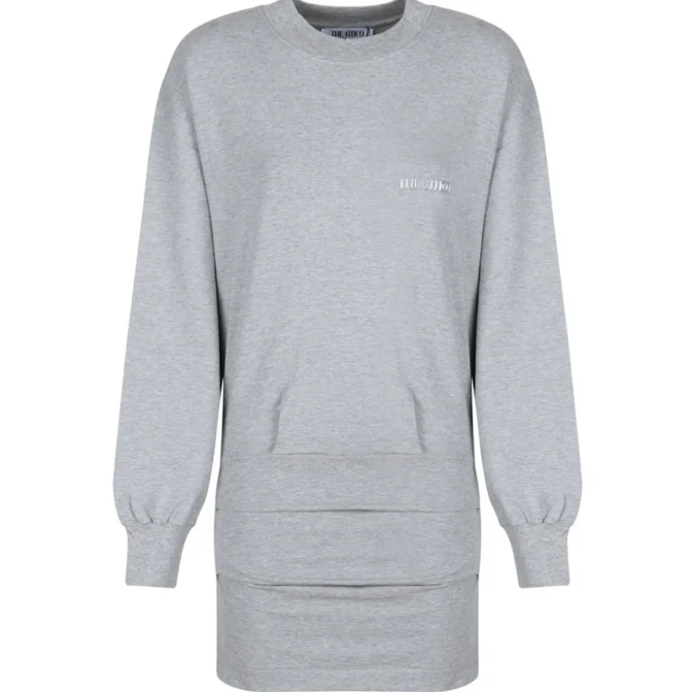 The Attico Heather Grey Mini Dress. Heather grey cotton mini dress, ribbed cuffs, crew neck, drop shoulder, pleat detailing.