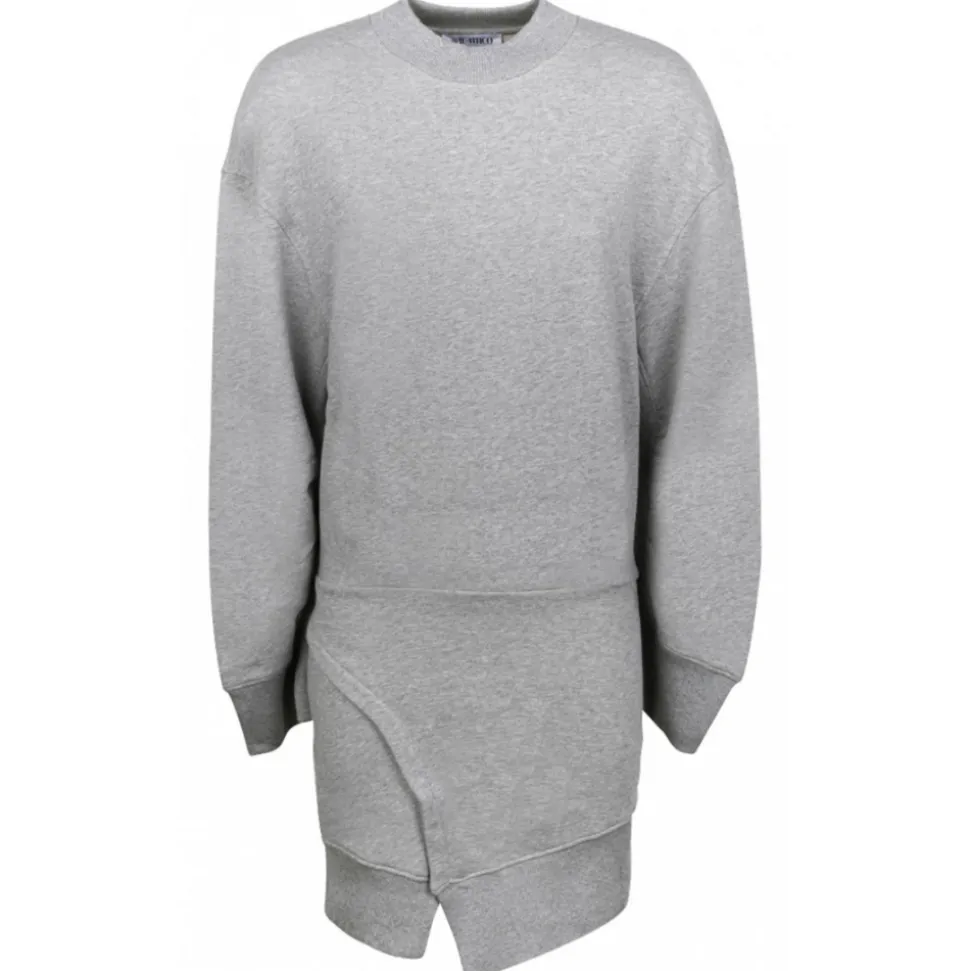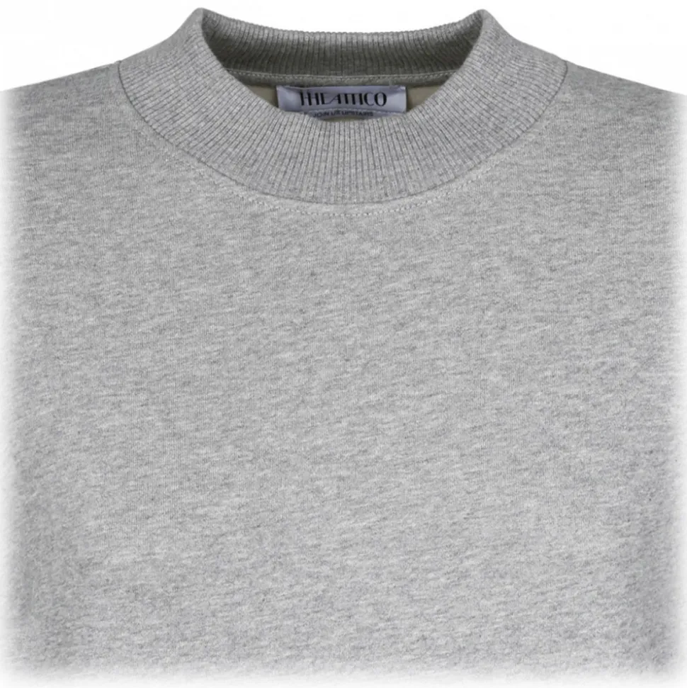 The Attico Ivory Mini Dress. Melange and grey mini dress in brushed fleece with asymmetric hem and metal logo rivet.